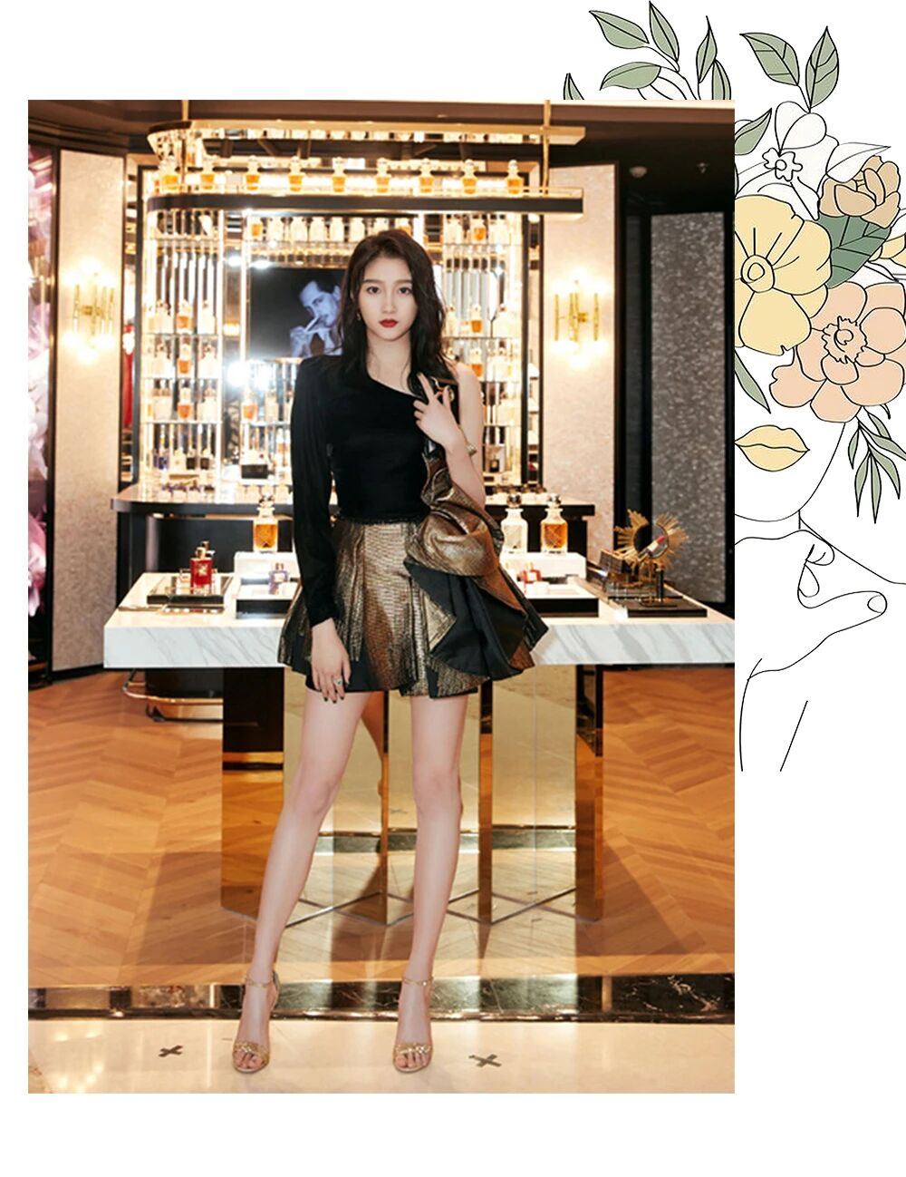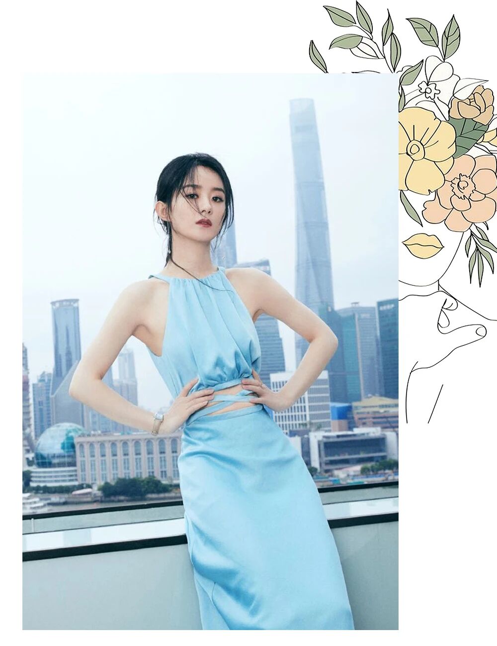 丝绸本就考验身材,松紧扎口的分段设计更是对上半身尤为挑剔。而交叉式的绑带是自律姐姐的成绩单,有一丝赘肉都能绑出五花肉的既视感。一条法式小礼裙,颖宝的驾驭下有了点中式的端庄。