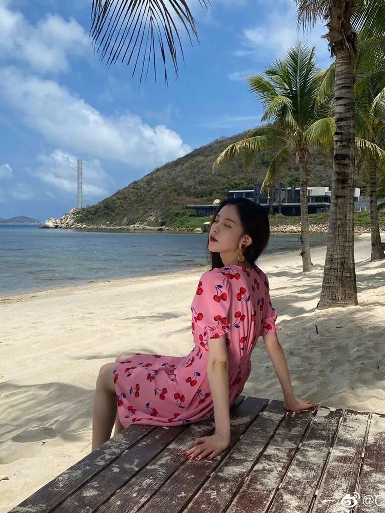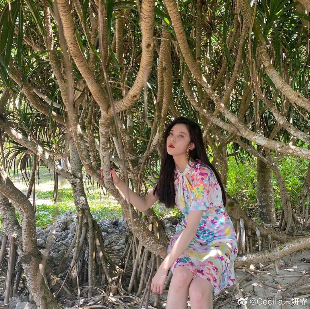 前阵子宋妍霏也在线演绎了Kate Spade多款不同的度假风印花连衣裙。