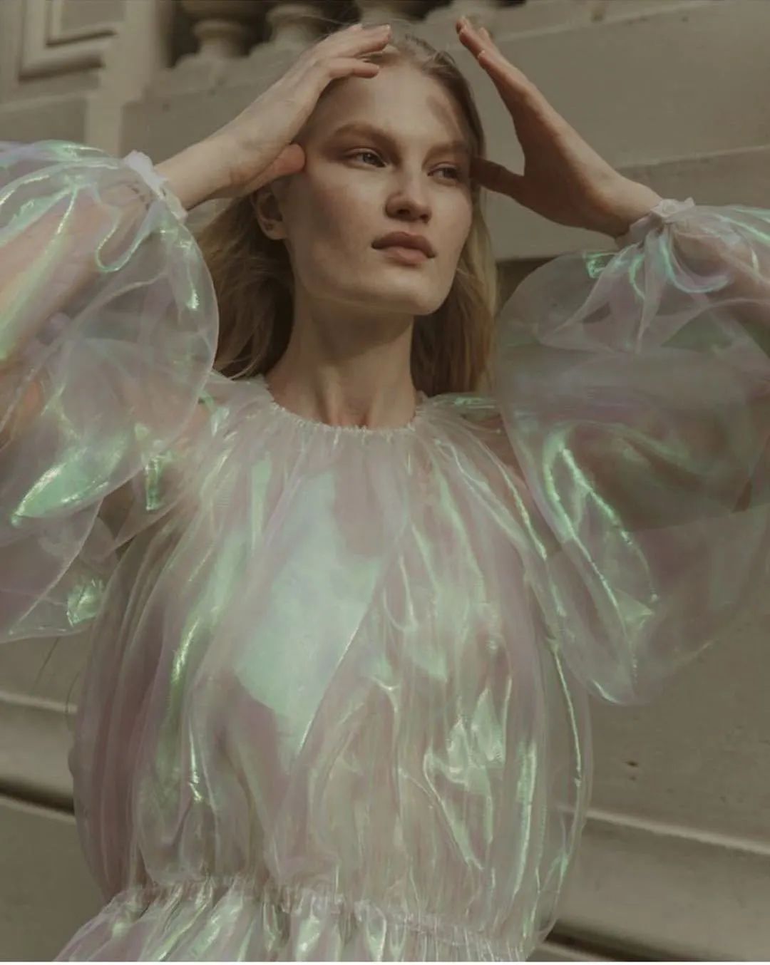 比如JW Anderson采用的人鱼姬面料这回就成功吸引到了芭姐的注意,淡淡的偏光在光源的反射下,营造出似有若无的梦幻感。