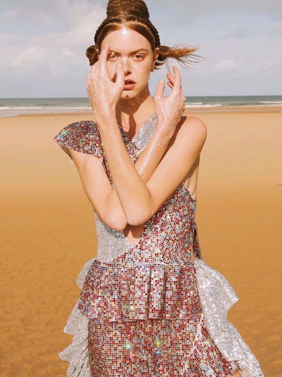 像是这种带有光泽感的细闪亮片,添加在裙装的局部,就像是给平平无奇的面料加了层闪光特效,不会显得浮夸,却又可以让大家在人群中注意到你。