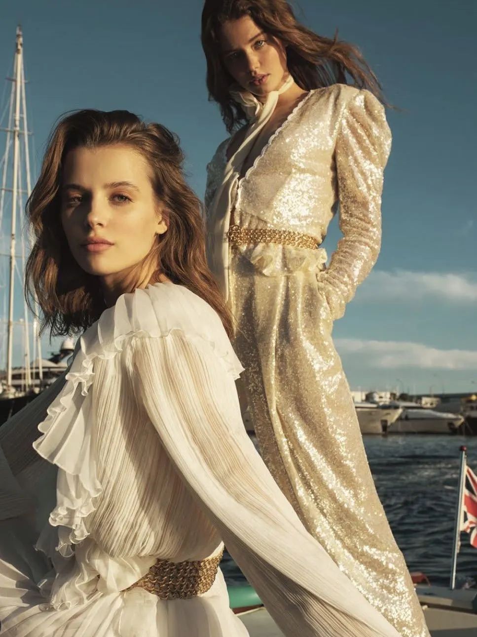 有没有发现,以往设计师都用垂坠感来定义度假长裙中的荷叶边元素,但是在今年,却加大了对复古的轮廓、蓬松褶皱荷叶边的强调。