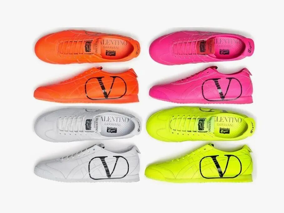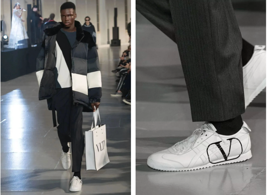 最近与Onitsuka Tiger推出联名款的还有Valentino ,在Valentino 2020秋冬系列中,模特脚上的白色运动鞋就吸引了好多人的目光。