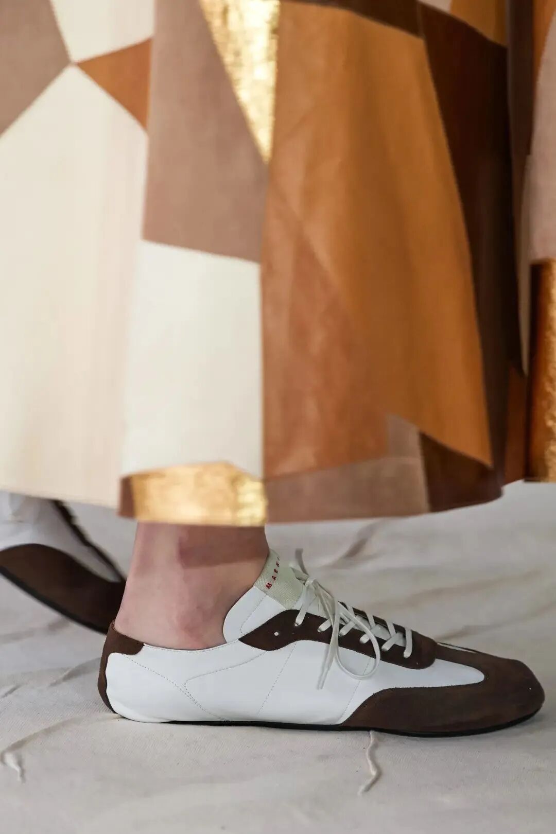 Marni 2020秋冬系列的复古运动鞋,轻薄的鞋身,流线型的鞋头,将舒适理念贯彻到底。