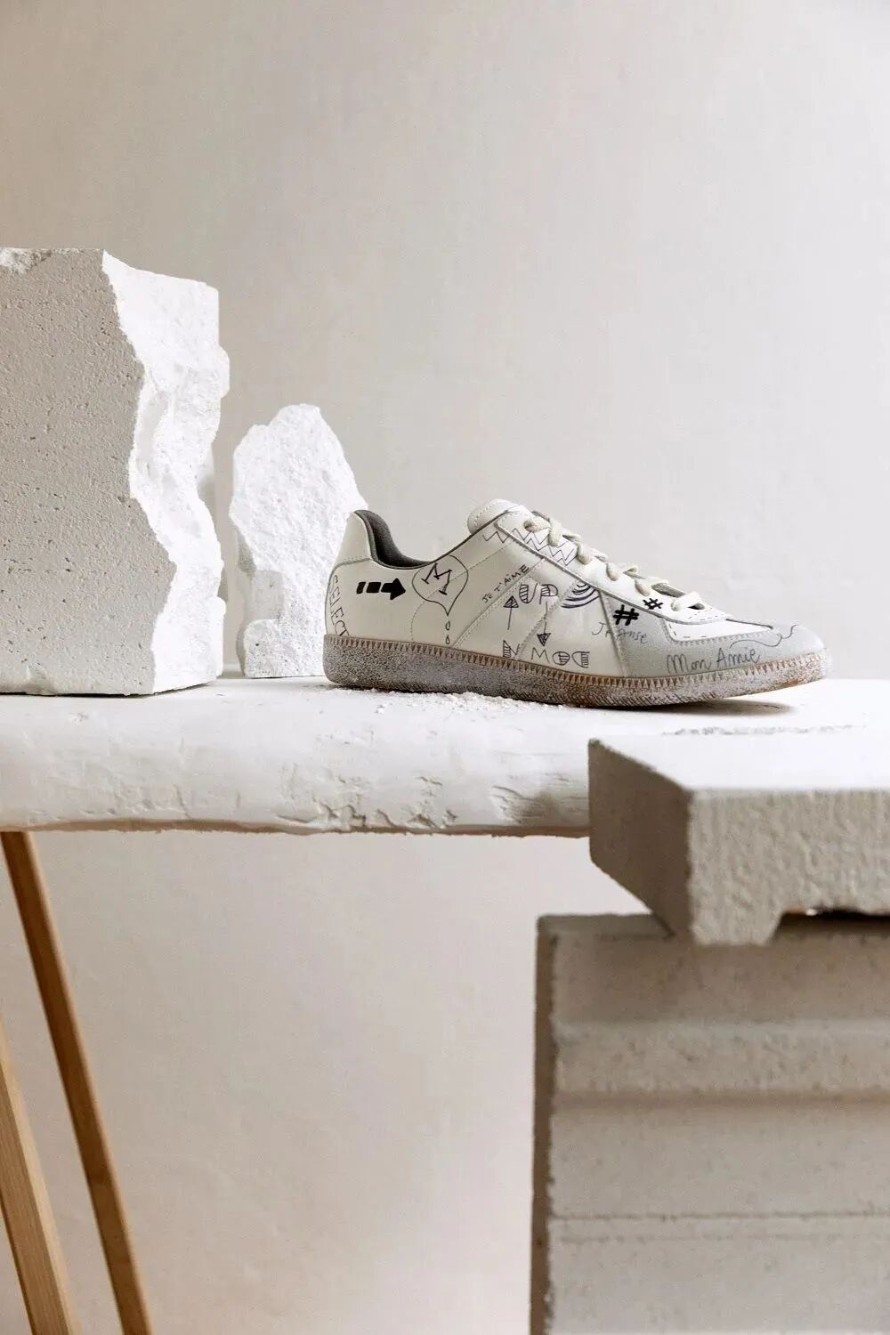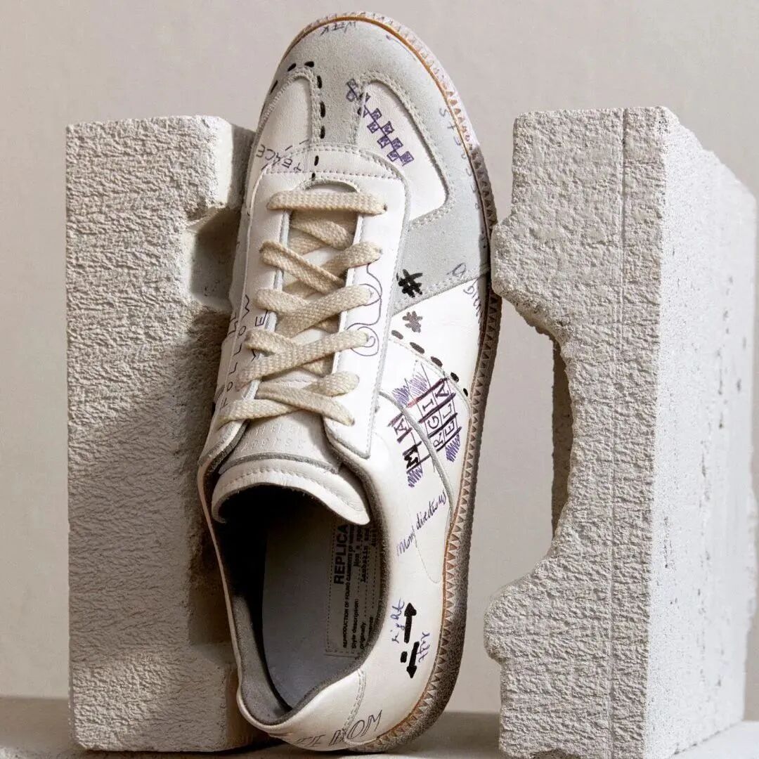 这双鞋是今年4月份奢侈品购物网站Mytheresa独家推出的Maison Margiela新品运动鞋,名为“ Vintage Graffiti”。