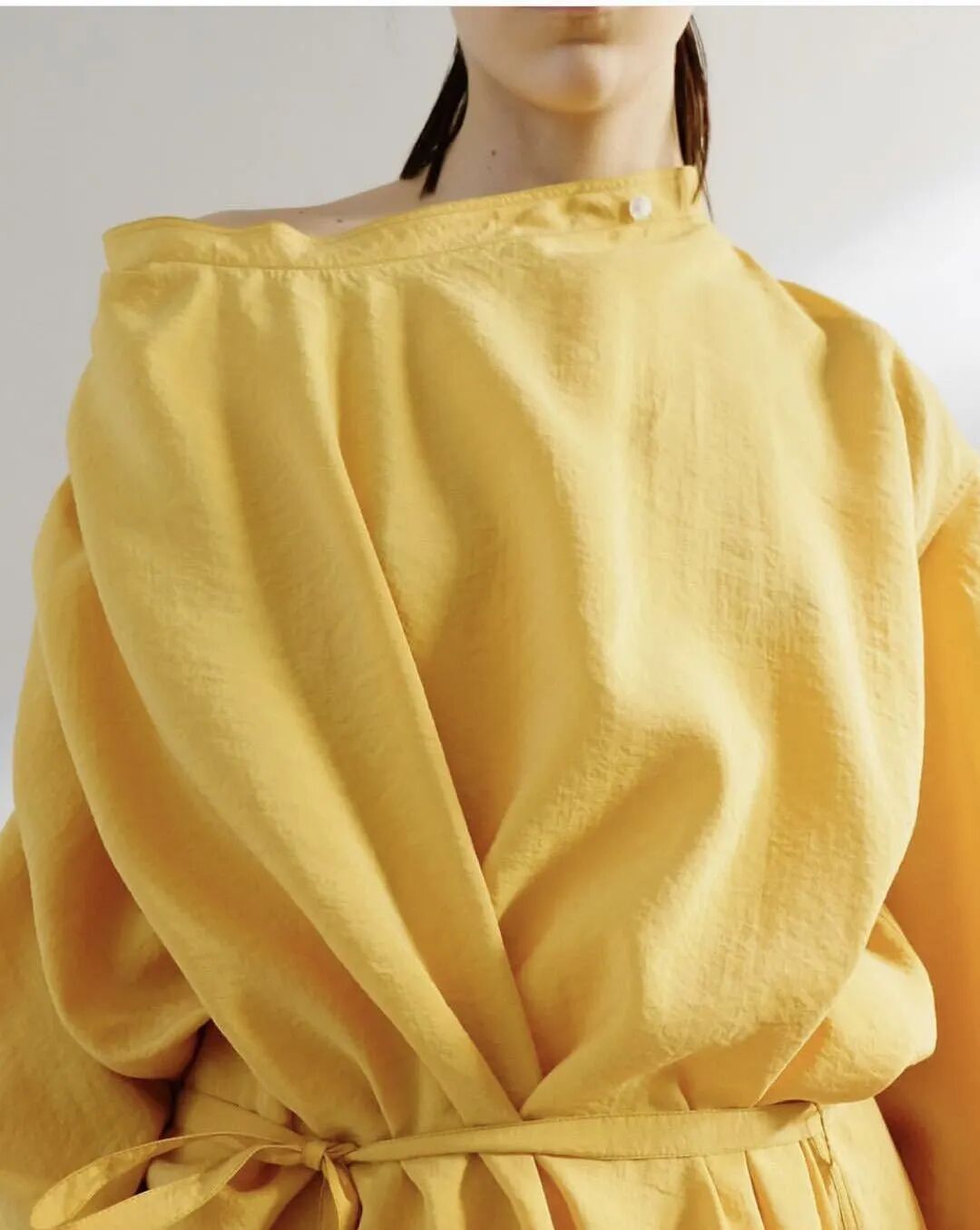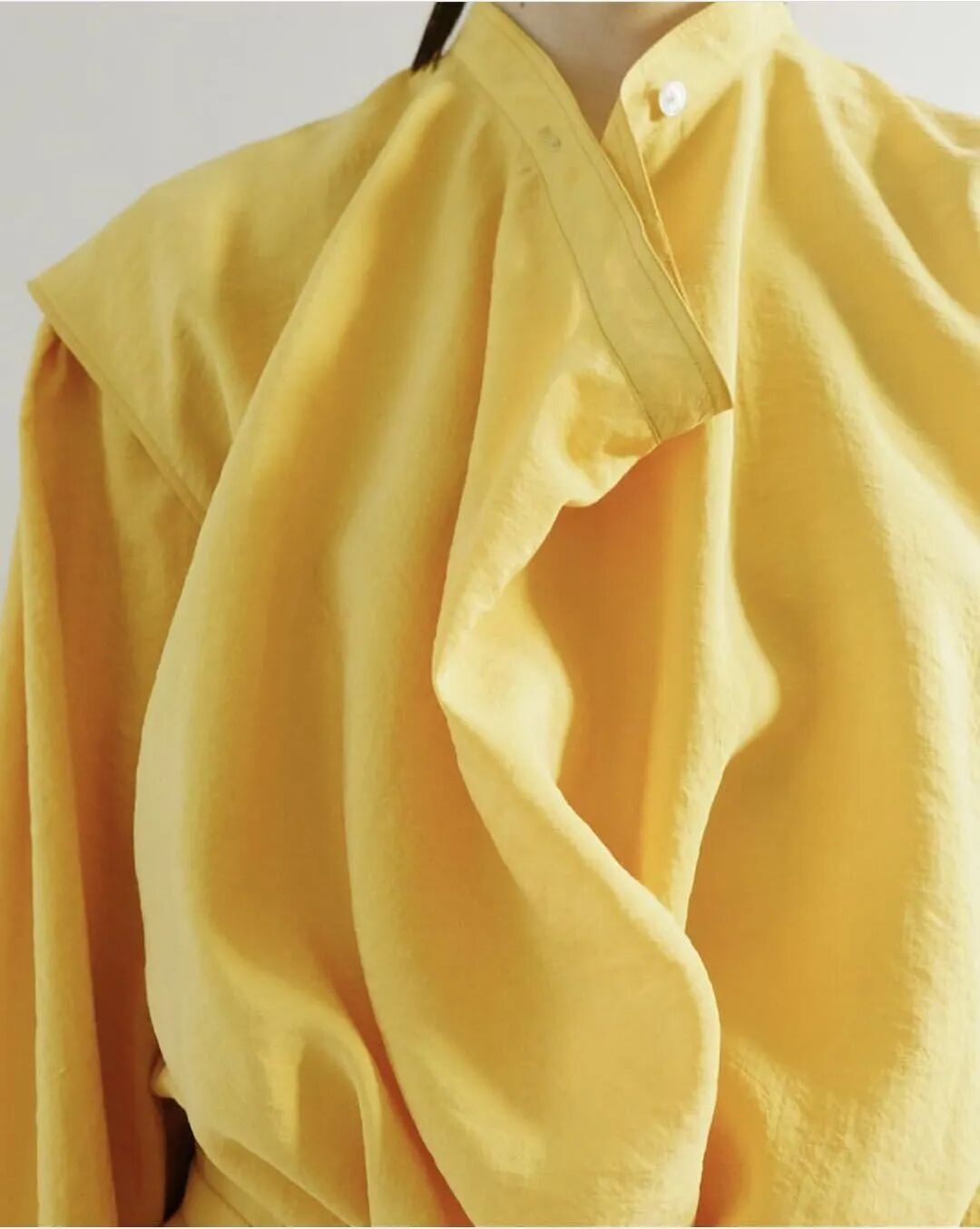 Jil Sander的棉质堆堆领设计,保持着一贯的简洁和高雅的质感,靠着巧妙运用褶皱和高质量的面料来体现服装的设计感和质感,一如既往的极简风,非常适合日常穿着。