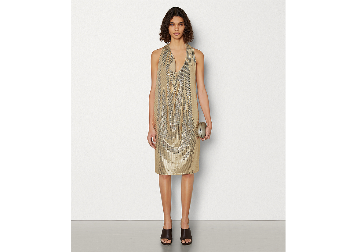 Bottega Veneta这次完全掌舵了时尚的风向标,推出的堆堆领连衣裙,只能用一个“闪”字来形容,亮片马赛克给了连衣裙更“丰富的想象力”,迷人又闪耀的人鱼姬偏光穿上身,让人想不注意都难。