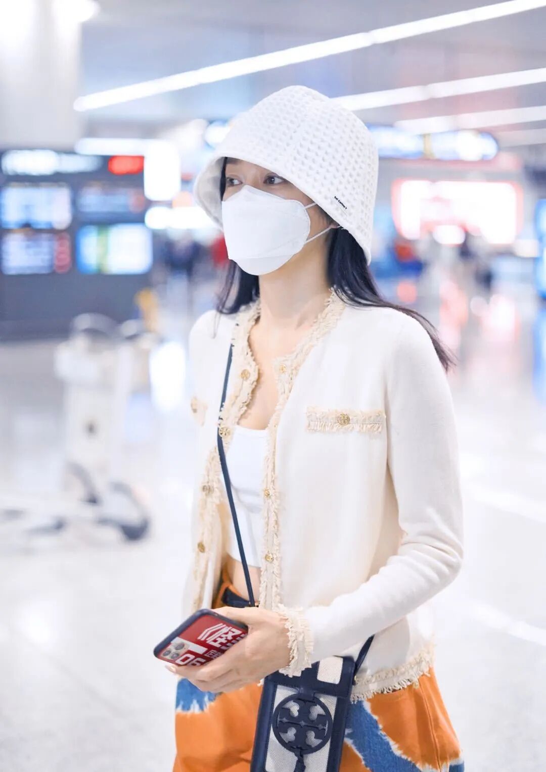 秦岚前阵子就挎上它来提升造型感,Alberta Ferretti扎染裤配渔夫帽,今天也是既温柔又能耍酷的百变岚岚子,