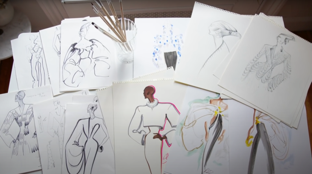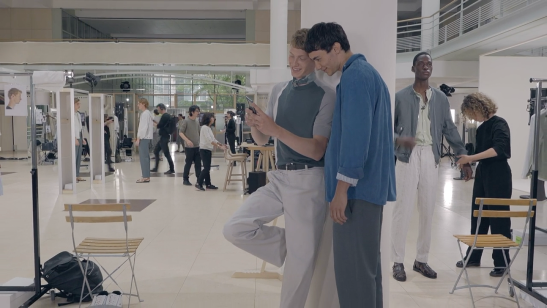 Hermès 2021年春夏男装秀以拟直播的形式,将往常时装发布秀的创作过程与后台工作展示出来。本支短片邀请到Cyril Teste执导,他作为知名戏剧导演,最擅长在单个场景中讲述丰富的故事。在导播的控场指引,与简单的长镜头调度下,身着新季成衣的男模穿梭在时装秀与大片拍摄的等待间隙中,仅通过悠闲随意地走动,就把宽松剪裁,柔和青灰色调与亮眼的皮革配件完美展示,同时保持了直播的真实感和时尚短片的轻快节奏。Dior 2020年秋冬高订系列的发布短片更像是一部微电影,讲述了工匠艺人为林中精灵定制华服的童话故事。Dior将嵌花、雪纺、丝光质地等高级工艺与材质,与更超现实的希腊神话结合,令高订服装更显浪漫奇幻,木箱中那些缩小的迷你人偶装束,也让本就精致的手工艺作品,变成纯粹的艺术品,如同只有在梦境中才会出现,这也是Maria Grazia Chiuri的灵感所在,尝试用“造梦”的方式来消除人们对未来的不确定性,创造让人愿意相信的美好事物。需要工匠们协同合作的高级定制作品,在疫情的封锁之下变得极度艰难,这也让每一季高级定制都几乎完美的Schiaparelli放弃了推出完整的系列。尽管没有成品推出,关于手稿的视频展示也别出心裁,设计师Daniel Roseberry穿过嘈杂的人群和广场,静坐在公园中,绘制高定手稿,背景和声与手持镜头的运用,仿佛在暗示着这是疫情期间的一场静心冥想,让观众沉淀下来欣赏高级定制的笔触,并以“未完成”的形式给予期待。