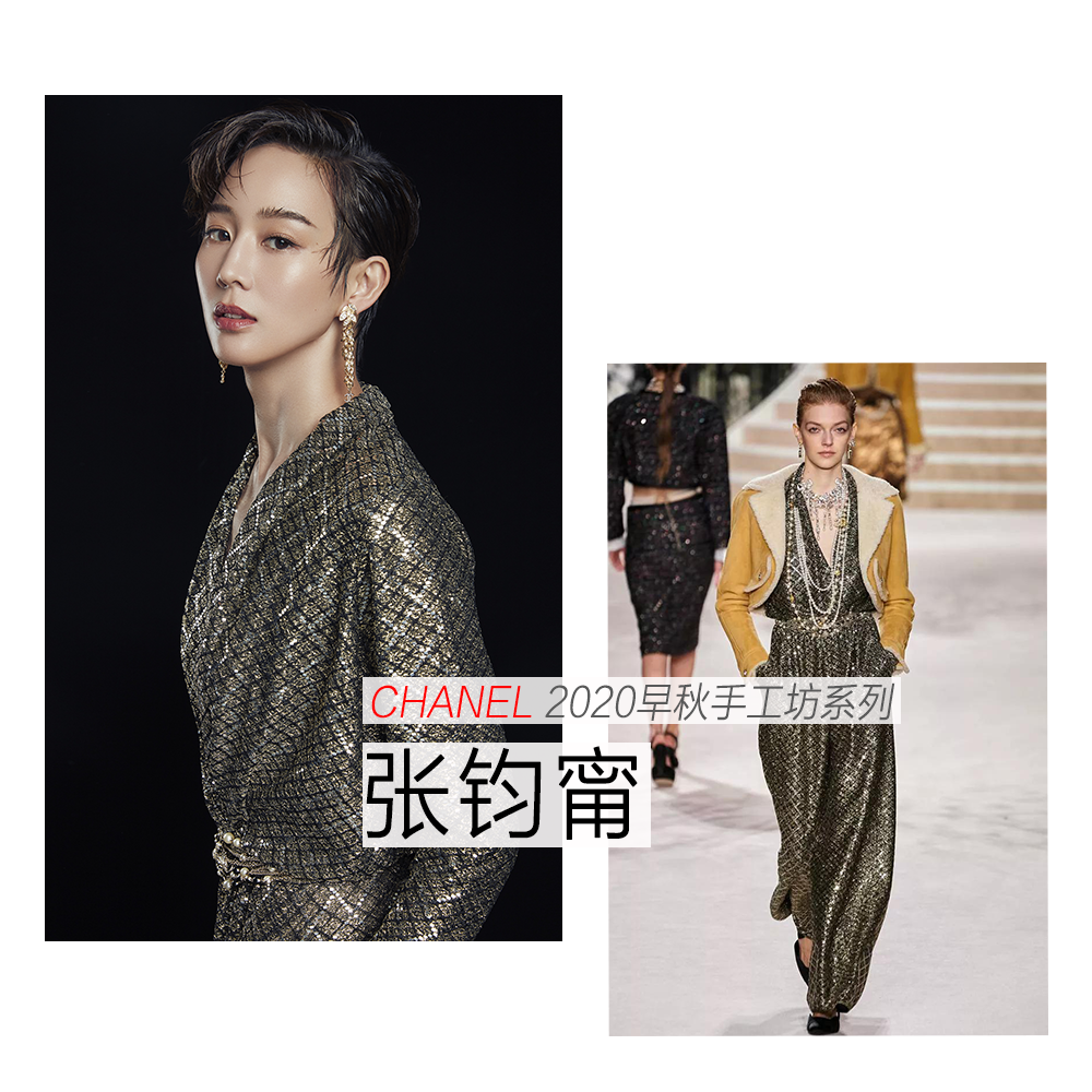 平时简洁利索的佟丽娅,在新一期的《舞者》中用一件波点裙转变了大家印象中的御姐形象,60年代的Polka到了丫丫身上,满是复古杂志封面的味道。 配上bling bling的流苏耳环,你奇迹娅娅子可太高贵了。 张钧甯 上榜理由: 「优雅与英气共存」 受疫情影响,张钧甯也许久没有露面。本周这位大女主专业户穿着一条鎏金璀璨的连体裤“杀”了回来,有被帅到。 这件看着就不简单的连体裤,来自不久前刚发布的CHANEL手工坊系列,重工制作相当精良,亮片缝制成标志性的菱格纹。张钧甯用短发和一簇花蕊般的耳饰就穿出了和模特完全不同的风格,原本复古的法式风情在张钧甯身上变成了更硬朗的现代美。 去掉了珍珠项链后,这一身显得霸气而有力量,还看到几分Gabrielle Chanel般的英气。 钟楚曦 / 上榜理由: 「钟式的港风升级了」 钢丝肩带悬在锁骨处,透着让人窒息的性感,颠覆了模特的古典。胸前处纽结的设计让胸型更丰满,铆钉状的水钻和丝绸泛起不同的光亮,太有质感了。 银色choker竟然有点未来复古的感觉,曦曦的港风确实独特。 傅菁 Moschino在2020早春系列中延续了它一贯的drama和天马行空,但傅菁上身的这件西装外套却张扬中带着克制,经典的西装版型加以白色线条人脸抽象画,充满了艺术感。绝的是,傅菁用一条工装裙作为内搭毫无破绽,金属拉链衔接得天衣无缝。 原来戏剧性的艺术风格还能这么玩,傅菁太会了。 / Hyein Seo近几年靠小众的暗黑机能风赚足了人气,这件改良式的旗袍不久前宋茜也穿过,搭配的是一条腰带。鸥演娜娜则另辟蹊径,用破洞臂套和袜套搭出毫不违和的冲击力。 这种颓败的解构让人有点意外,但入眼后又全是合情合理。 上榜理由: 「“长不大”的东瀛风」 杨超越也是一位在穿衣上很快找到自己定位的选手,并且走的是别人不曾走过的东瀛风路线,而在这条路上,她又重点拿捏了充满童趣的少女路线。像是这条大印花娃娃裙,盐甜兼得。 充满夏日风味的印花、华丽珍珠领结和水钻装饰,极繁主义在她身上却有了巧妙的平衡,繁而不杂。也不知为什么,超越妹妹穿什么都有种Miu Miu的既视感。 这种童话风格更讲究细节,花朵头饰和裙身的水彩印花十分契合,脚上Roger Vivier的厚底凉鞋攒满了巴洛克的繁复艺术,妥妥的小公主一枚。 责编 / Ankey寰 助理 / 陈书宇、曾子妍