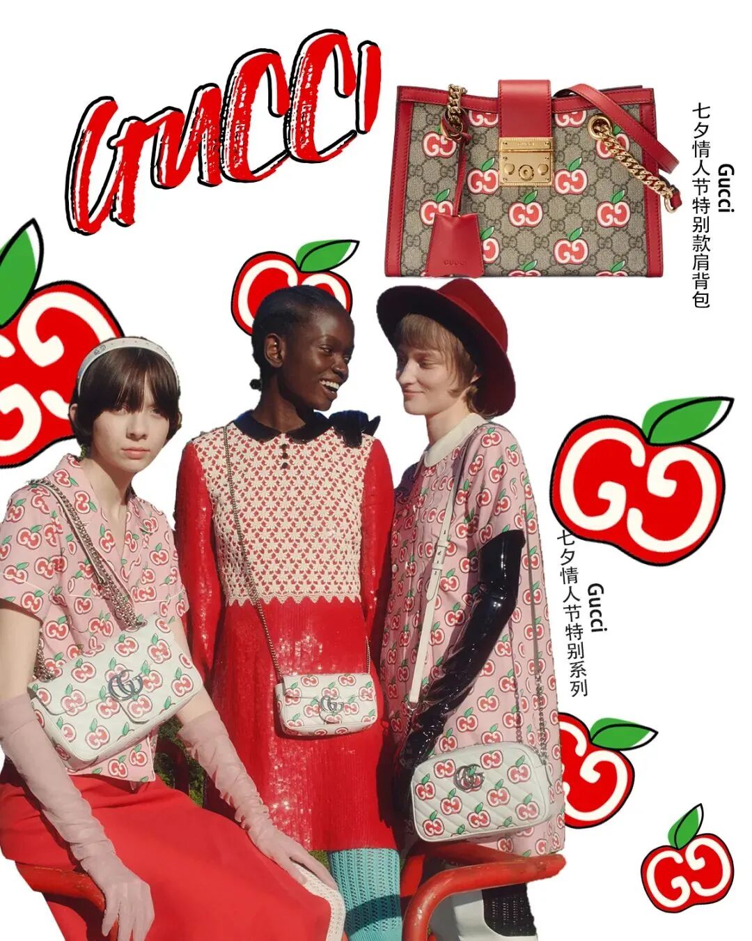 Gucci在七夕情人节之际,将这颗闪动着甜蜜与青春气息的魔法苹果,表达对爱情的守望与期许。手绘演绎的白色双G字母勾勒出具童趣感的苹果形象。随处可见的双G和苹果图案散发出令人眼前一亮的鲜活生命力。