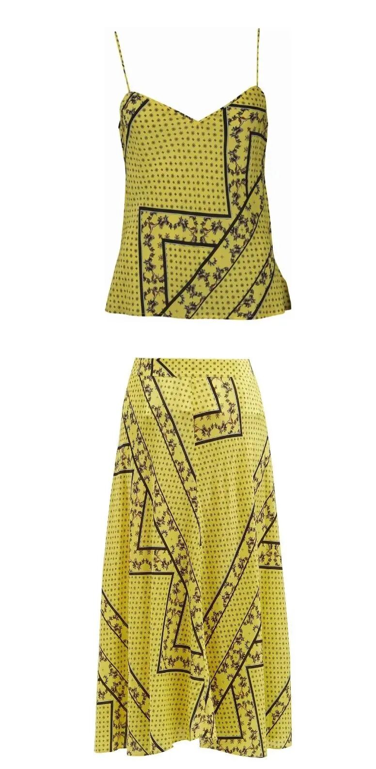 除了上衣配裤子,小裙子也可以穿出优雅随性的美式风。Lily的这套细肩带洋装就是复古美式最少不了的穿搭,虽然是分体式套裙,但是造型师很巧妙地用黑色腰带进行衔接,注入时尚造型感的同时看起来就像是一条完美的Slip Dress。纤细的肩带和V字领的设计,是性感和优雅的结合。而裙身的抓皱及伞状裙摆,配上明亮的黄色,在行走间多出一份随性的飘逸轻盈。