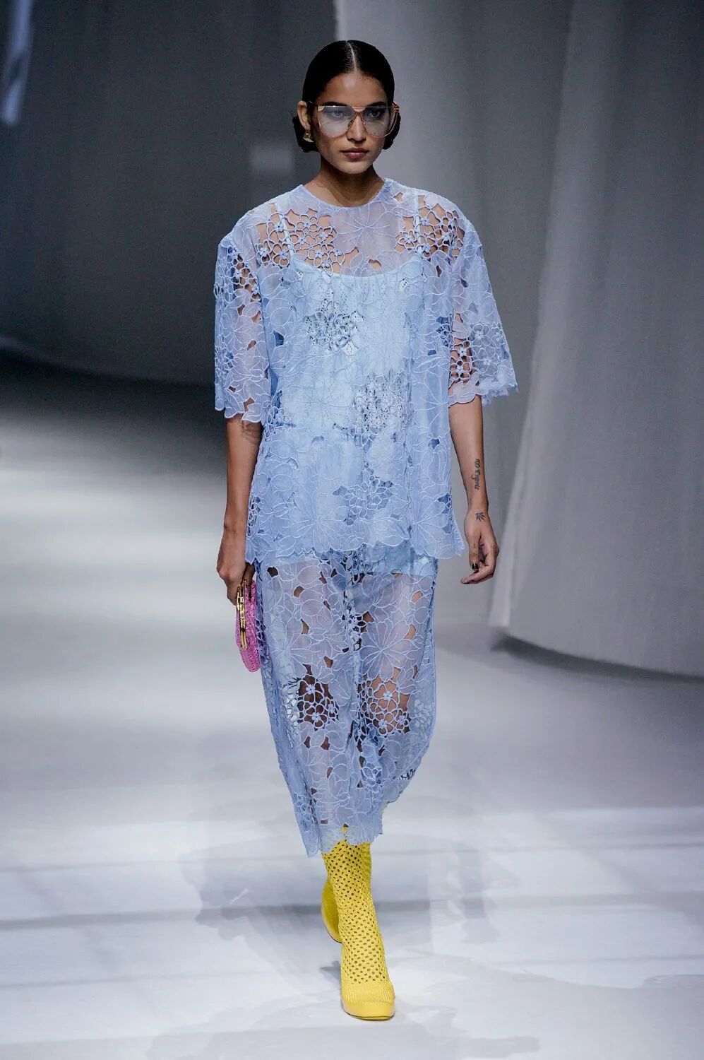 精致复古的刺绣、来源于老式勾花桌布的设计、镂空编织……这些便是本季最为重要的家族记忆元素。Silva Venturini Fendi以从幼年在奶奶家生活时接触到的老物件为灵感,以小物件重唤家族史,打造出了一系列“古早”的记忆感单品。甚至让超模Edie Campbell和Olympia Campbell、Cecilia Chancellor和Lucas Chancellor、Philippe Haseldonckx和Dries Haseldonckx在秀中分别展现了母亲、父亲、姐妹和儿子的家庭角色。