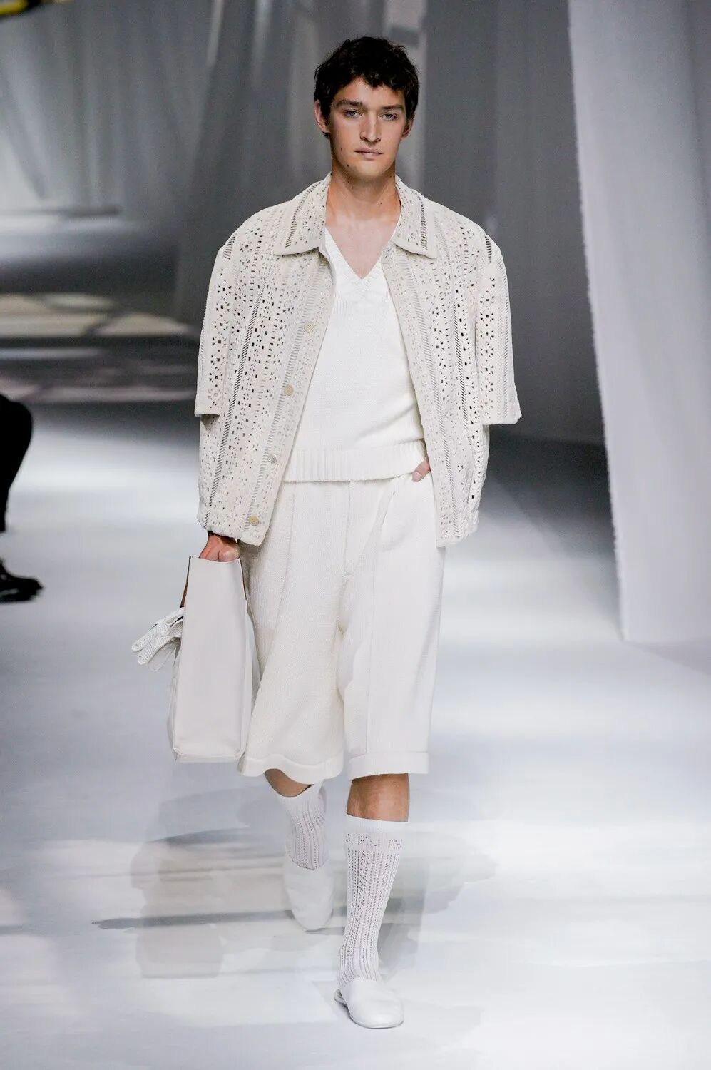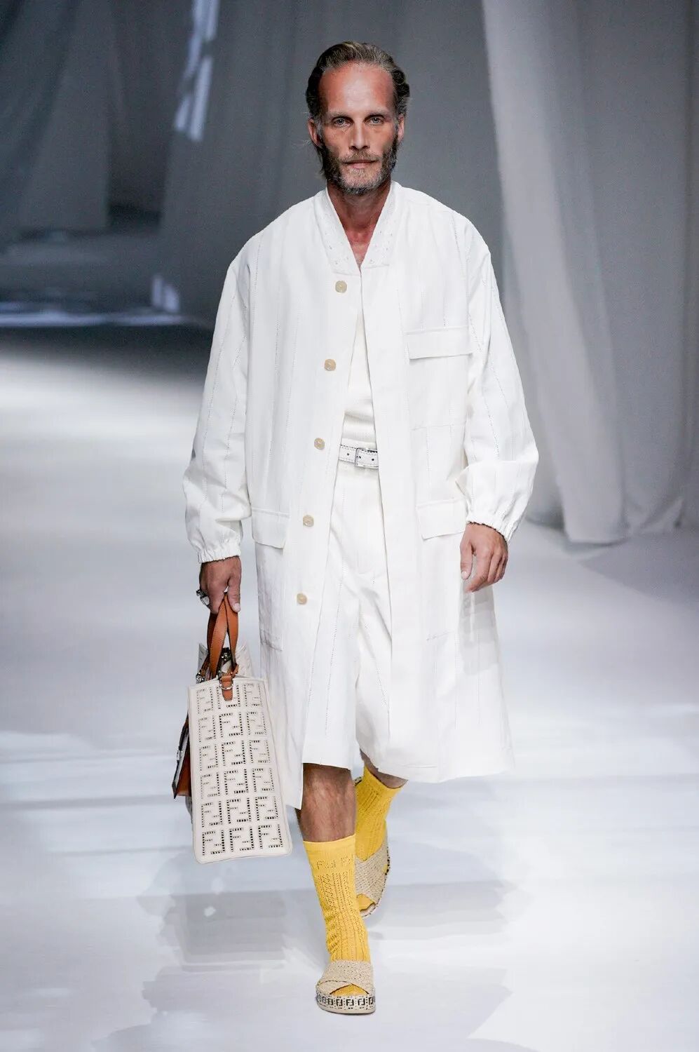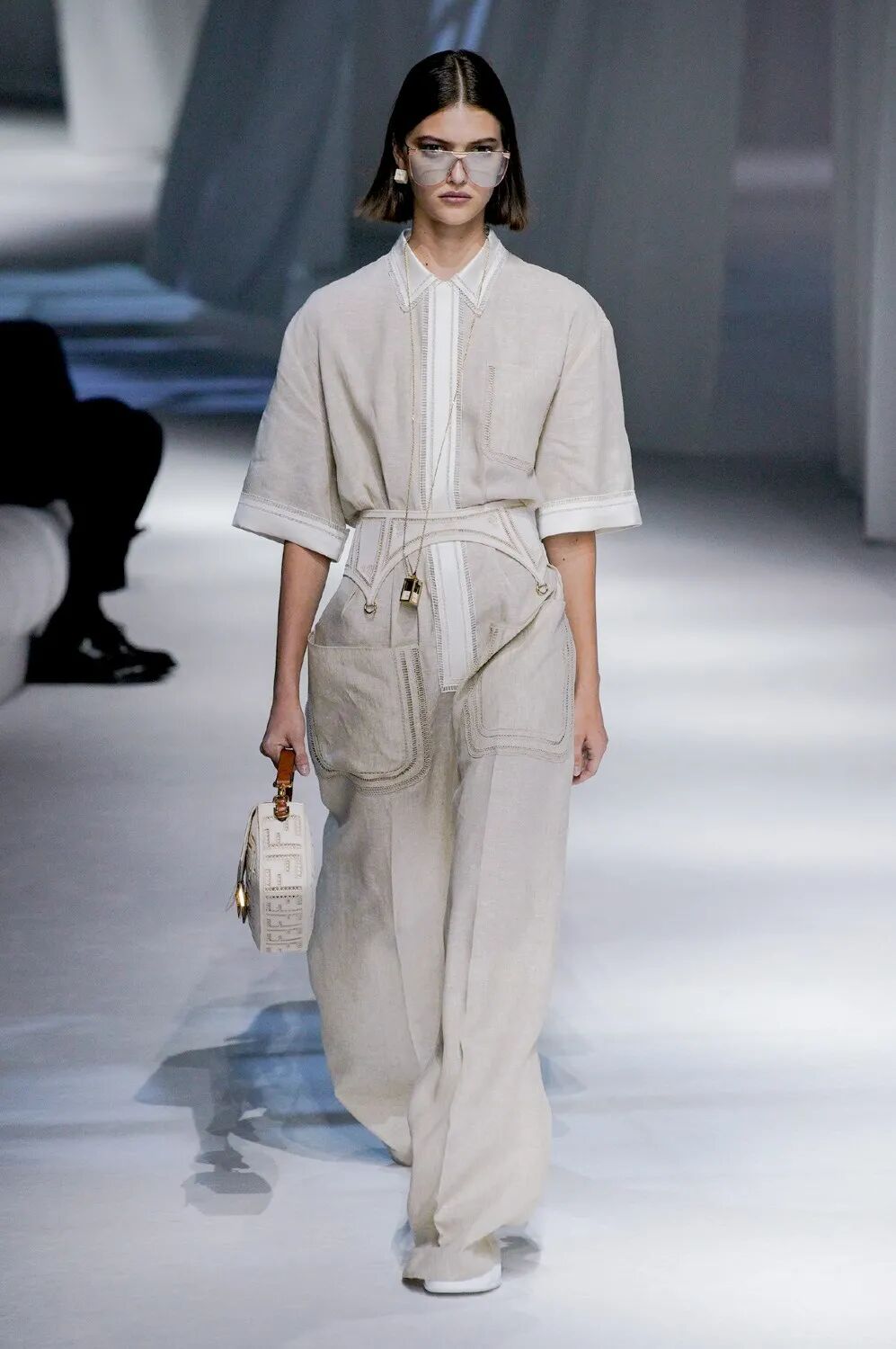 本季共有67个Look,依然是Fendi一贯的简洁实穿风,自然清新。同时,本季运用了大量的“生活”元素与家族意象,展现了Fendi是如何希冀通过时装来重召日常,并用细微体察的生活美学来对抗“后时代”的虚无与荒诞。
