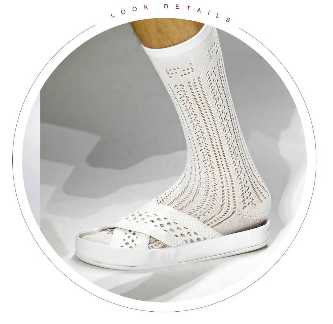 来自外部世界的打量一一落在了服装之上,每套造型都与窗户中的故事一一对应,光与影在此刻交错。窗帘在秀场空间中飘动,空灵干净的氛围让人恍如自然之境。