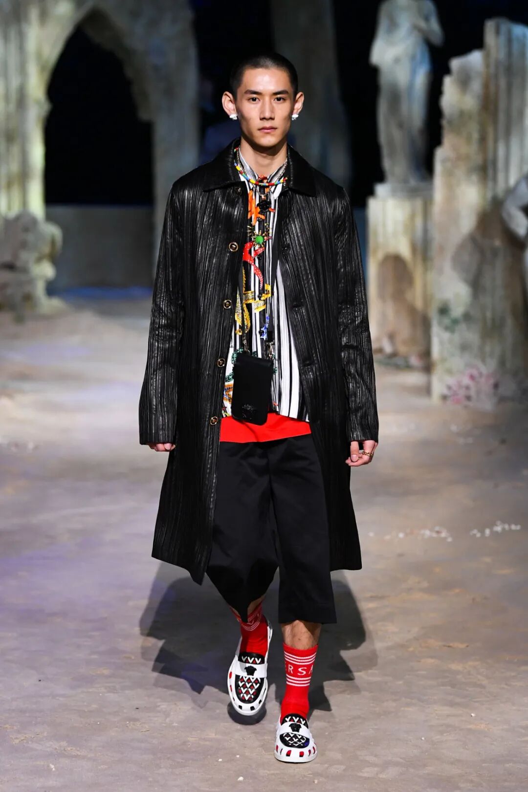 这一季Donatella Versace再次将男女装合并发布,令Versace式性感有着更为完整和立体的呈现。本次系列从自然界,以及人与自然和谐相处的理念中汲取灵感,海洋主题贯穿整个系列,将实用性与梦幻感相结合,打造从会议室到海滩,适应不同场景的各类造型。