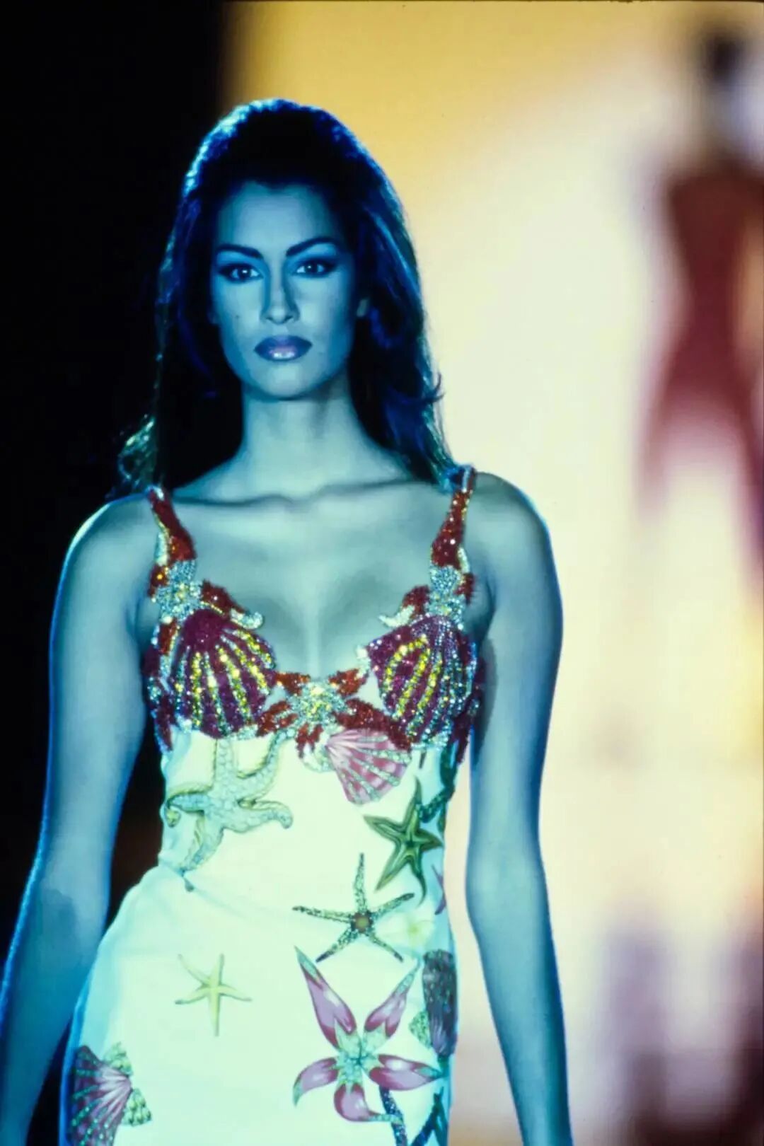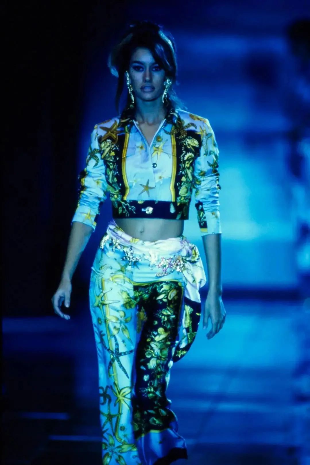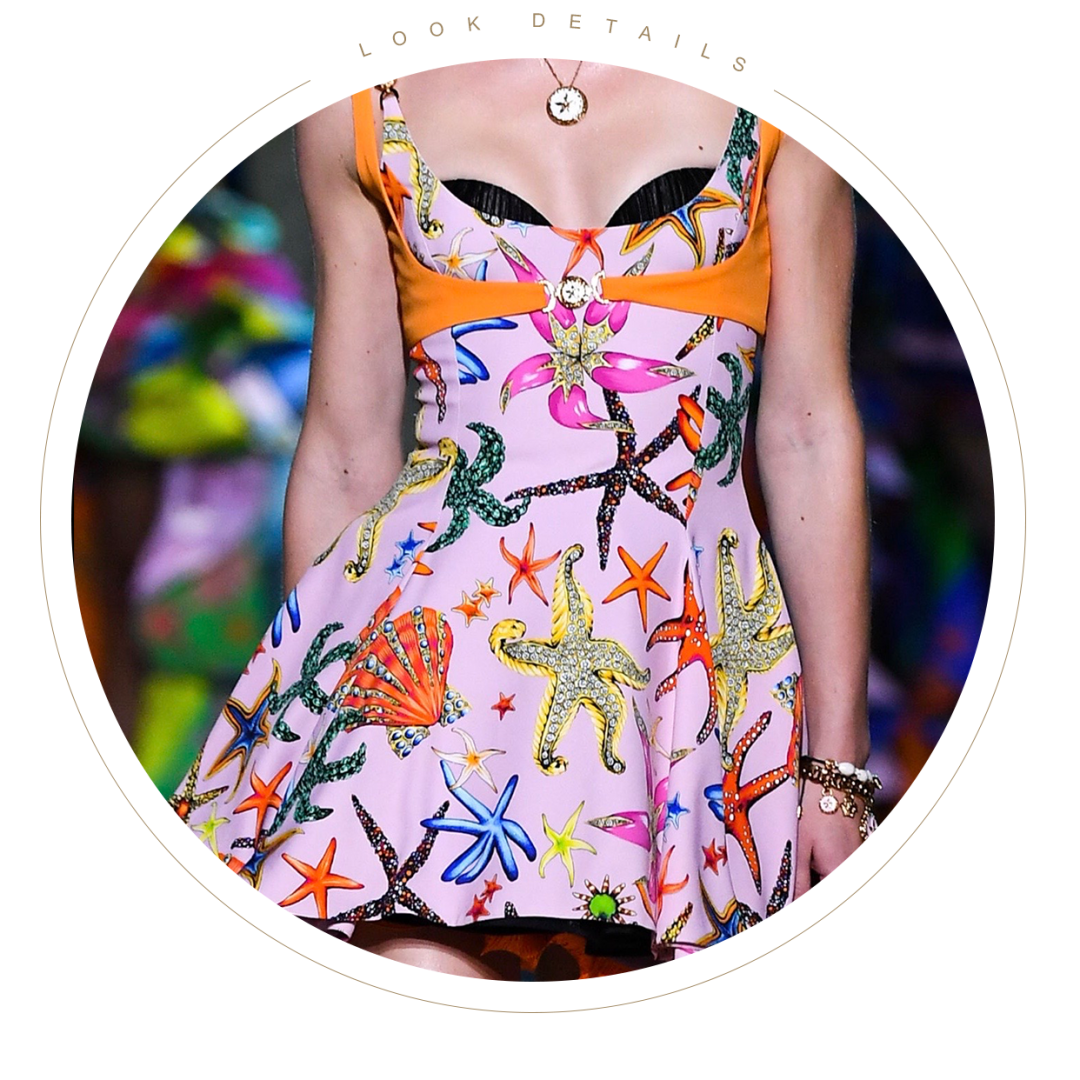 这些Trésor印花是对Gianni Versace的永恒经典的致敬,Donatella Versace将Gianni Versace在1992年春夏系列中做过的海星、珊瑚和贝壳元素重新诠释,让Versace女郎在这一季沾了海洋精灵的仙气,地处深海的美丽奇珍,构建出华美旖旎的海洋场景,美到令人不可思议。