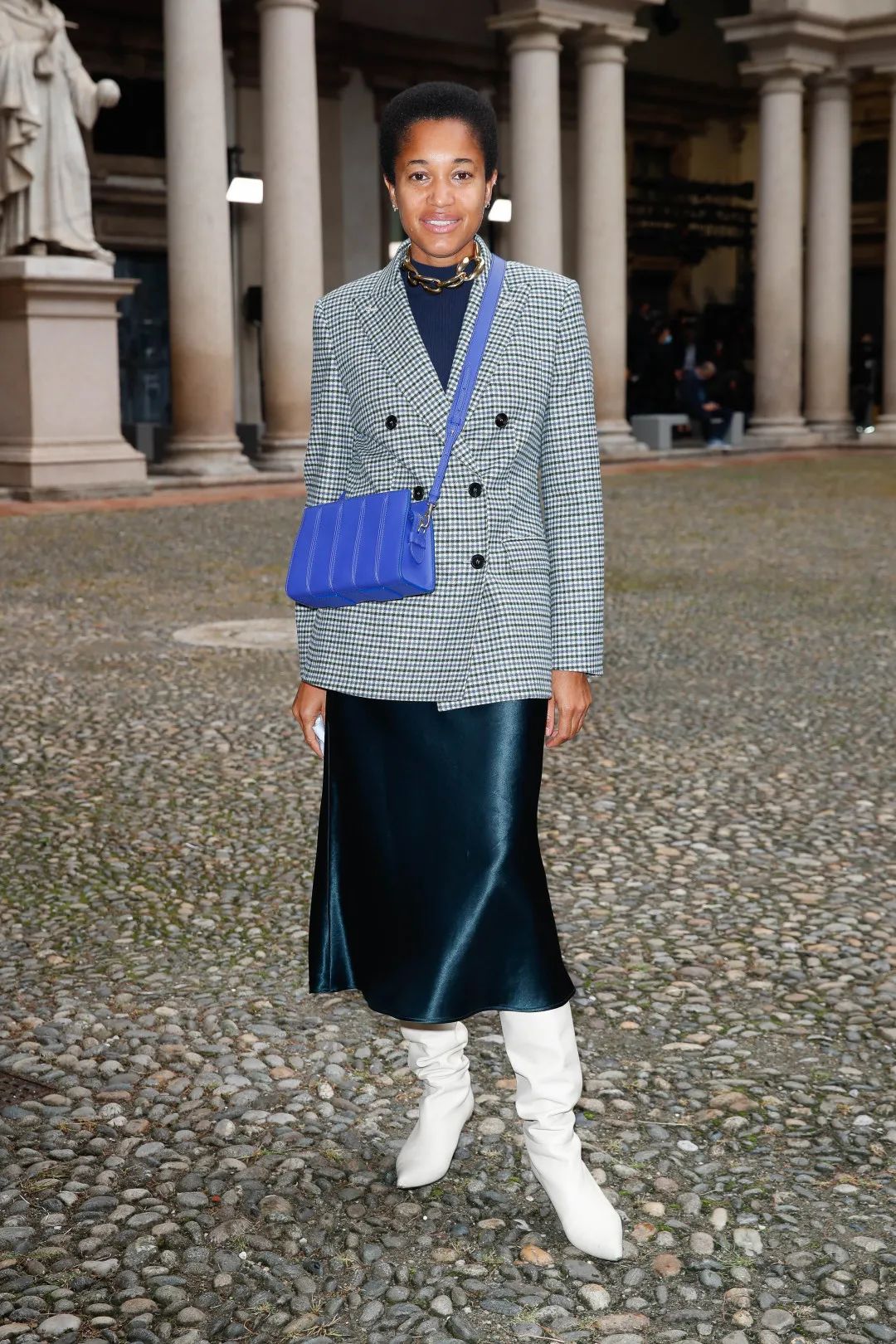意大利名媛Bianca Brandolini也出席了本次秀场,内搭同色系西服套装外配羊绒外套,既保暖帅气又层次感十足。