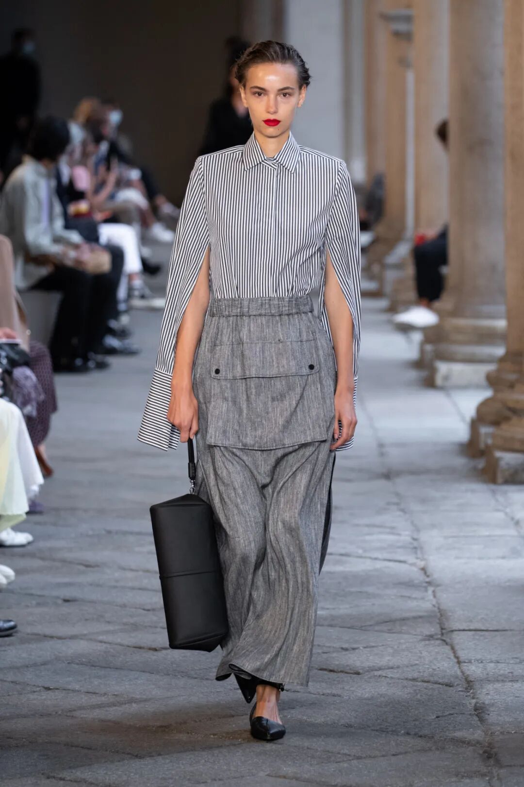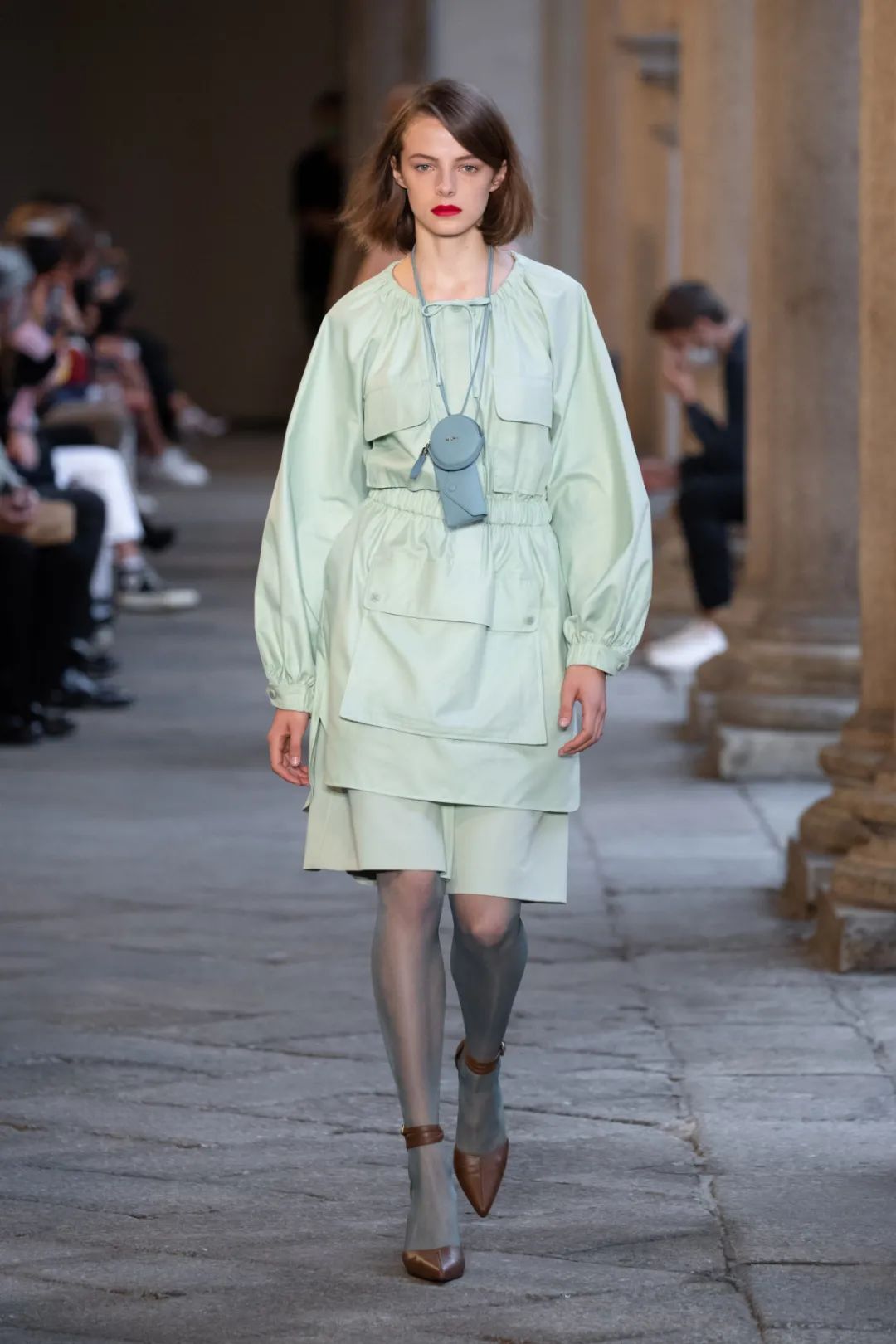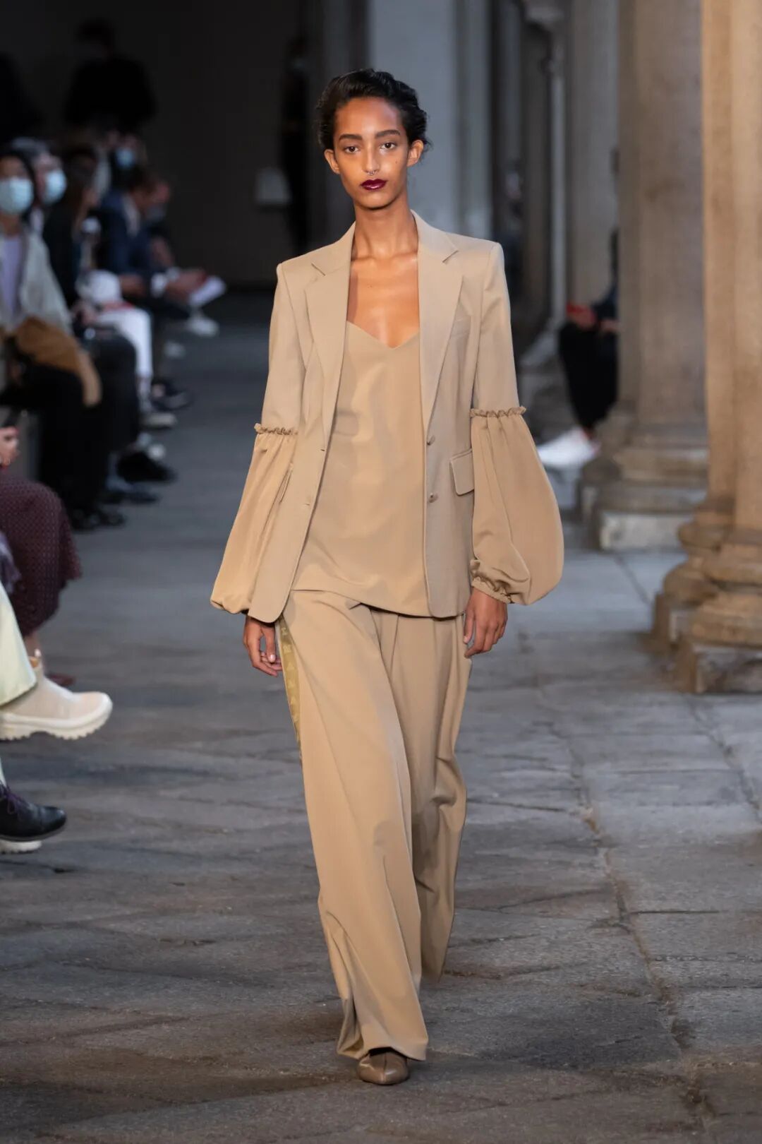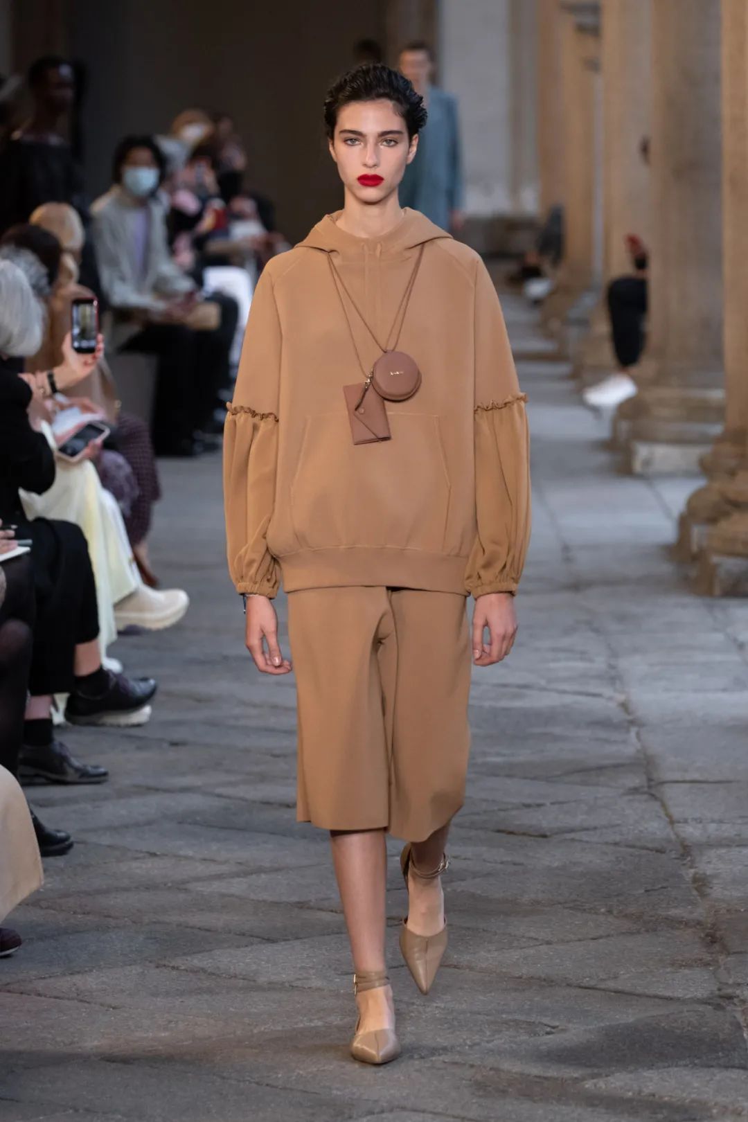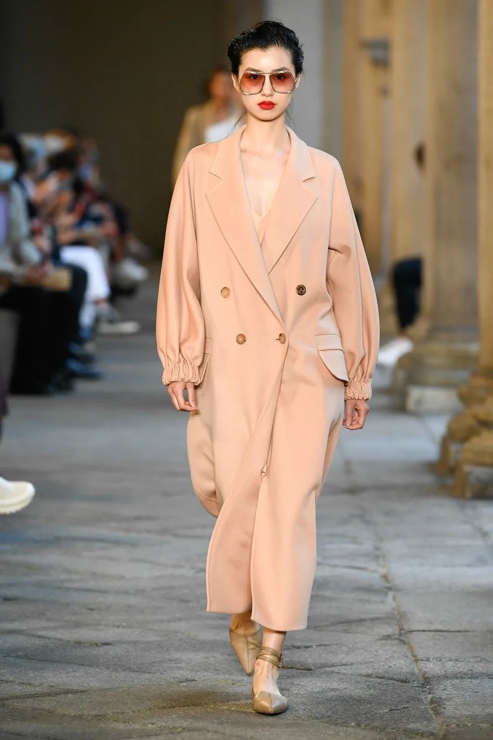 本季45个LOOK依然是以Max Mara经典的大地色系为主色调,整体的风格带着脚下生风的都市女郎气息。在文艺复兴新风潮席卷下,新款廓形应运而生。短款风格简约,长款剪裁宽松,同时还加入了明亮色彩和街头风格,展现了Max Mara是如何将16世纪肖像中的复古风情融入现代潮流,让想要重塑世界的女性张扬魅力。