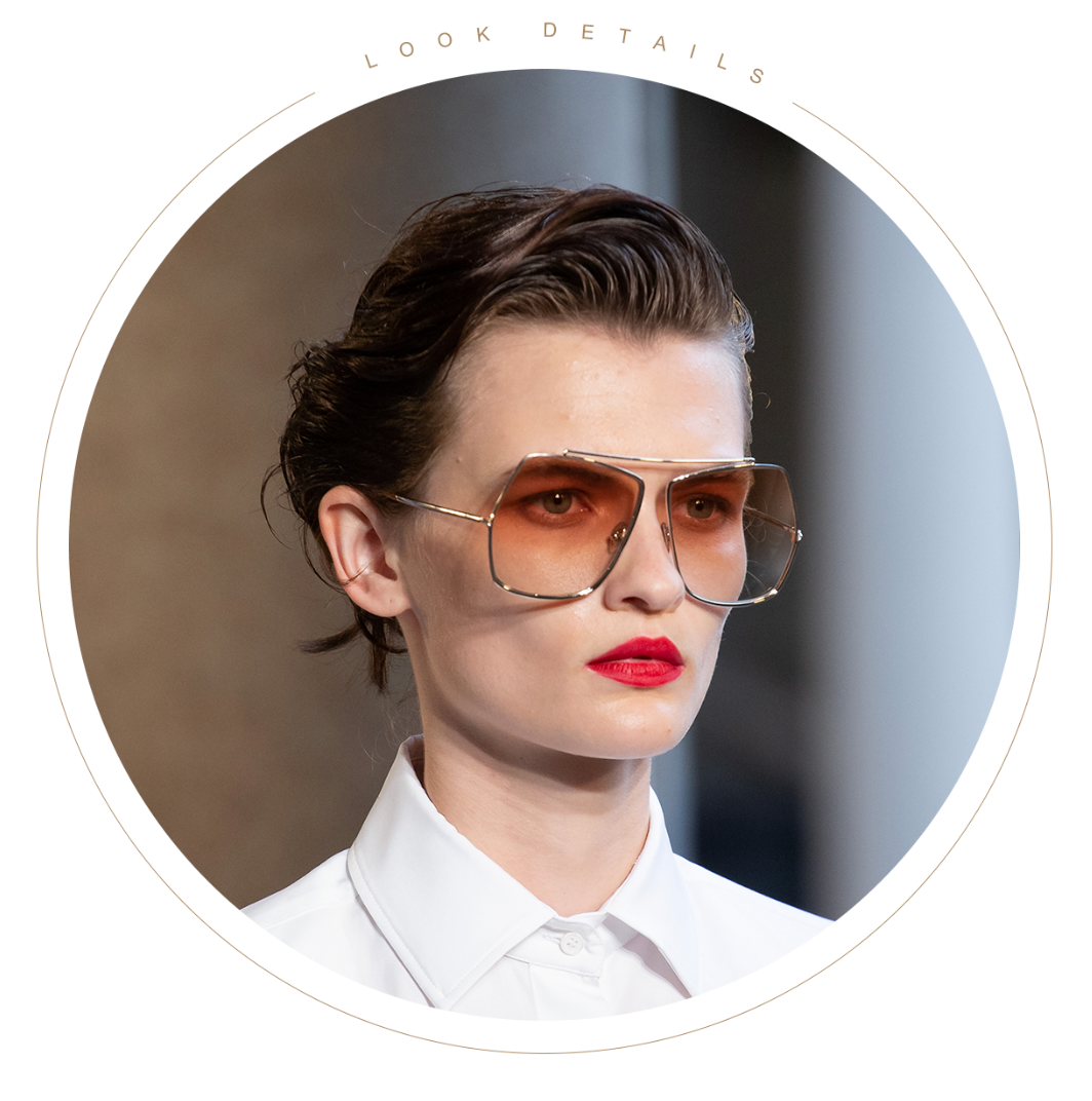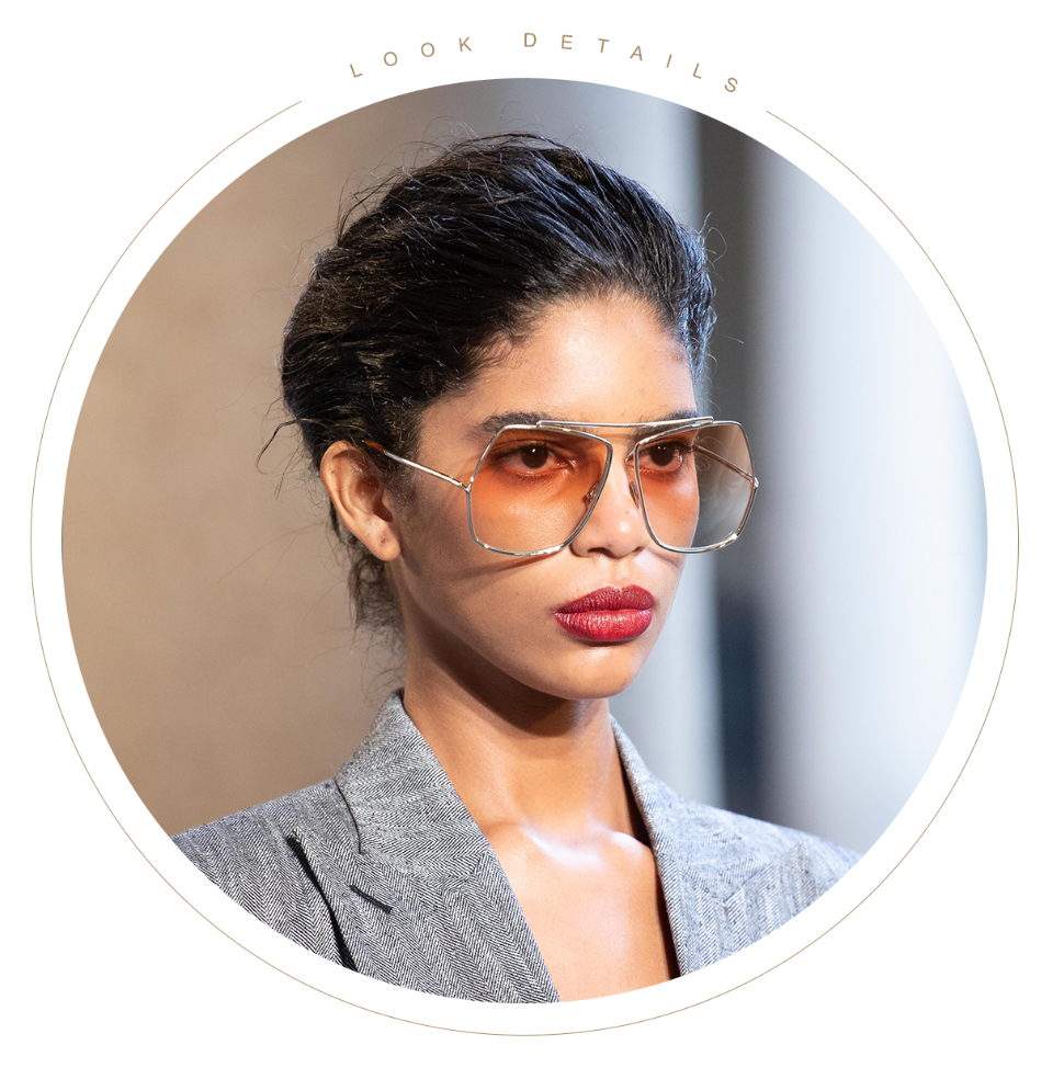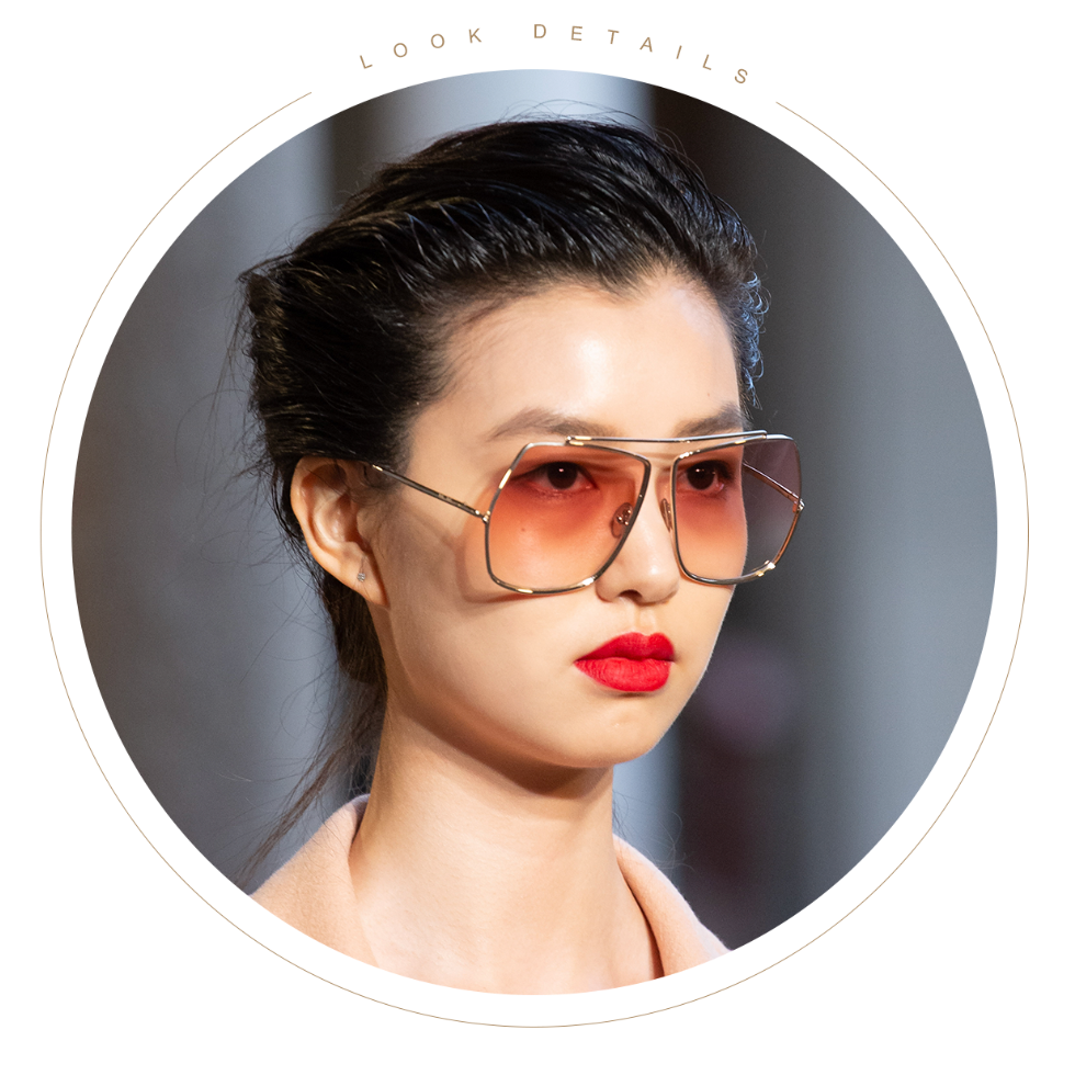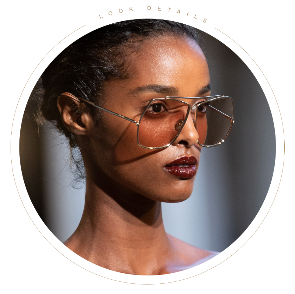 从文艺复兴的戏剧服饰中吸取的灵感不仅体现在服装的设计上,Ian Griffiths也将复古元素体现在本季的饰品上,每一件饰品就像是打开现代与古代任意门的钥匙,承载着历史记忆又孕育着现代的魅力。比如这超大款的太阳眼镜框架充满着现代的设计感,但有色的镜片则充斥着满满的年代感,异形的镜框象征着打破那些循规蹈矩的习惯。