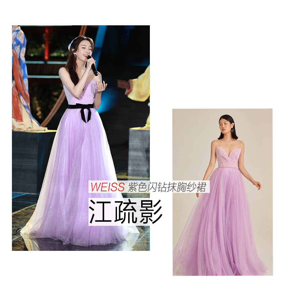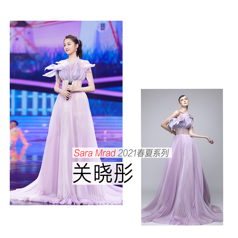 上榜理由: 「格纹西装不系扣露Bra的神仙穿法」 自从倪妮剪了利落的短发之后,仿佛打开了新世界的大门,再也不仅限于往日的时髦文艺风。最近一身格纹西装造型亮相活动的倪妮,飒气十足,又刷新了网友对她不同风格高级美的认知。 复古设计的西服套装出众又独特,倪妮的这一套修身剪裁的卡其色格纹小西装,线条流畅极具上世纪70年代英伦时髦感。最吸睛的部分要属内搭的翻边Bra设计,为套装增添性感元素的同时还大秀了一把好身材。下身搭配一条微喇的西装裤,在超大的复古感中交织出嬉皮风的潇洒。 走路都带风的喵总,撩动的不是头发而是本芭姐的心。 李沁 上榜理由: 「身披红妆,美人如玉」 在国与家撞个满怀的日子里,李沁与许凯联手在国庆音乐会上合唱歌曲《你好2020》,用歌声向祖国祝福。舞台上的李沁身穿正红色飘带长裙,端庄大气,带领着我们不负韶华,勇往直前。 一贯偏向清新自然的她这次选择了颜色鲜明的中国红礼服,效果大概就是一个“根正苗红”的女娃娃。礼服采用方领的设计搭配泡泡袖的剪裁,突出颈部优美的曲线,背后镂空的设计将明艳的红色营造出不失庄重的性感,悄然间降低了正红色所带来的气势,带来一种神秘的浪漫。而夸张的蝴蝶结设计,在肩上形成了袖子的视觉效果,绸缎质感的面料和拖地裙摆的加持,奢华高贵的沁沁子可太让人心动了。 转眄流精,光润玉颜,举手投足之间尽显“一枝红艳露凝香,云雨巫山枉断肠”的风采。 虽然是靠表情包出的圈,但刘敏涛最近对于时尚的拿捏越来越厉害了,在各大舞台上都完美展示了实力女演员的魅力。今年的双节晚会当然也不例外,一款粉色修身长裙,优雅风韵。芭姐认为敏涛姐离靠穿搭再一次出圈也不远了。 纯净的粉色,不添加一丝杂色,配上珍珠项链的加持,低调的高级感油然而生。 / 杨紫的这款粉色连衣裙不仅颜色粉嫩,设计也很有少女感。领口采用的荷叶边完美展现了迷人的锁骨线和肩颈的线条,身前的多层花边装饰和腰间交织的镂空既能重塑腰身还能增加层次感。而下身独特的交叠渐变褶皱裙摆随风摇曳,飘飘欲仙好似花精灵,温婉甜美。 你若盛开,清风自来。心若浮沉,浅笑安然。 江疏影 蓬松的披发配上夸张的同色蝴蝶结发饰,一双水汪汪的大眼睛,直勾人心魂,不禁让许多网友发问:这一顿到底是吃了几个仙女? 关晓彤 / 上榜理由: 「剪纸般的花瓣裙」 这条香芋紫色花瓣裙来自SARA MRAD的2021春夏高定系列,细节的戏份相当足。全身采用褶皱的面料配上抹胸处立体的花瓣剪裁,展现出与花朵绽放一般的视觉感受,华丽中散发着甜美。腰部镂空的设计既能起到装饰作用还能巧妙地连接裙子的上下两部分,适当地露出小蛮腰,这一丝小性感拿捏得恰到好处。 花瓣自在绽开,呈现舒展之美,仿佛是来自梦境中的花仙子。 责编 / Ankey寰 助理 / 曾子妍