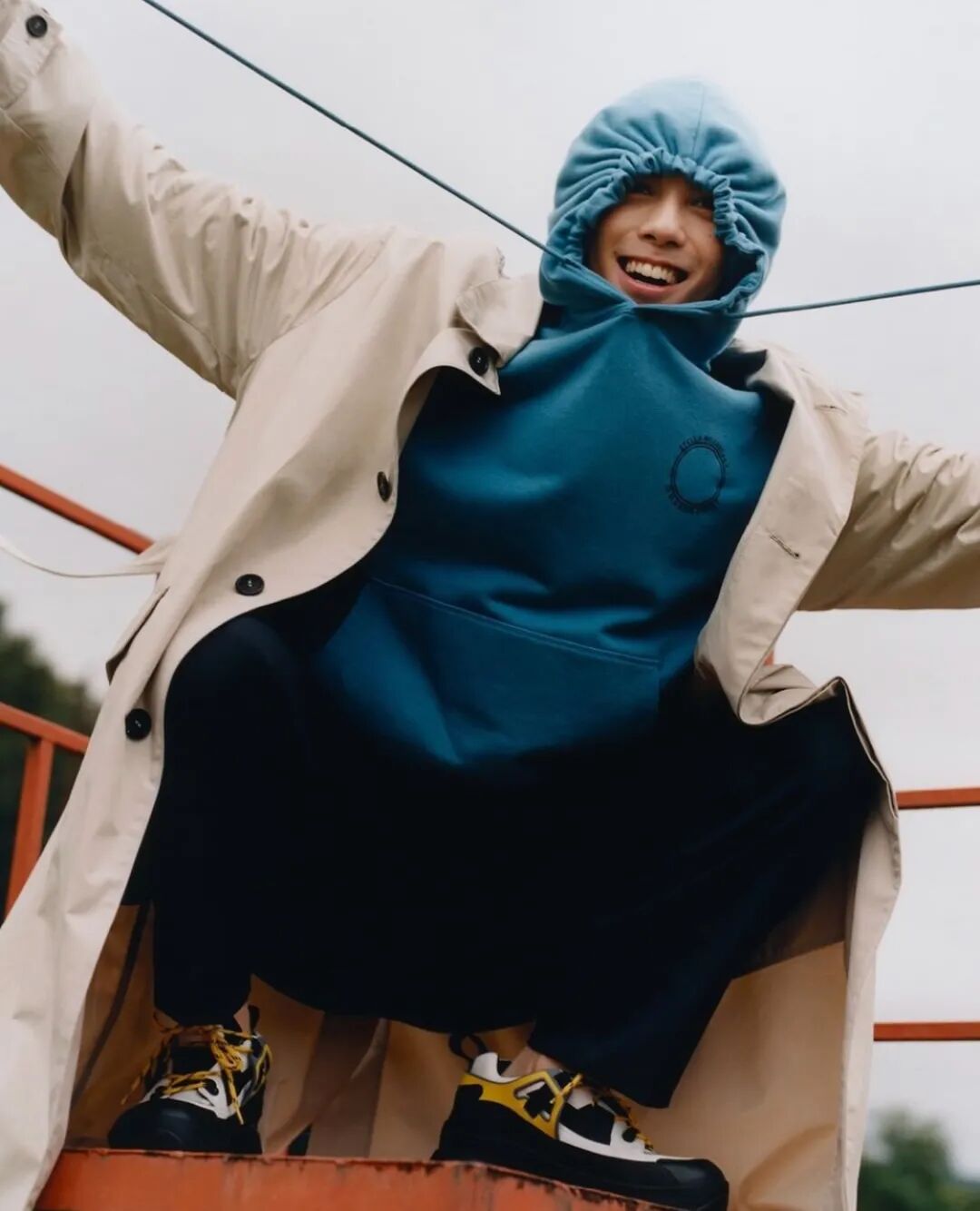 吴磊弟弟还倾情给Stella McCartney拍摄了大片,和连帽卫衣mix出了不一样的街头感。