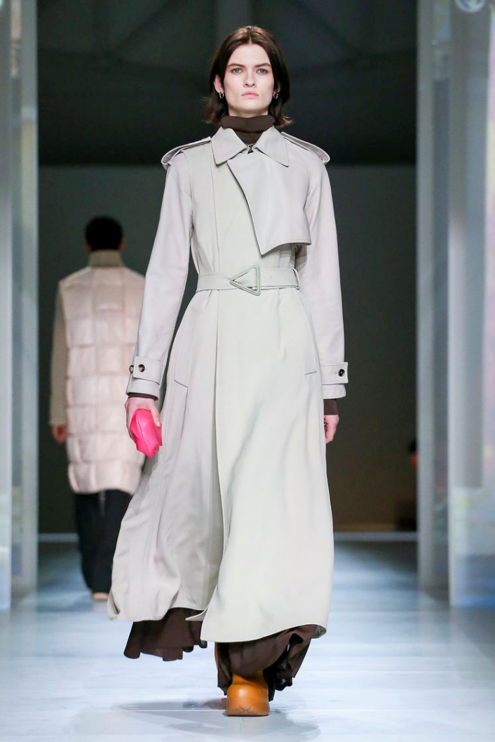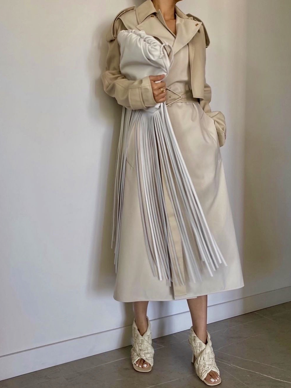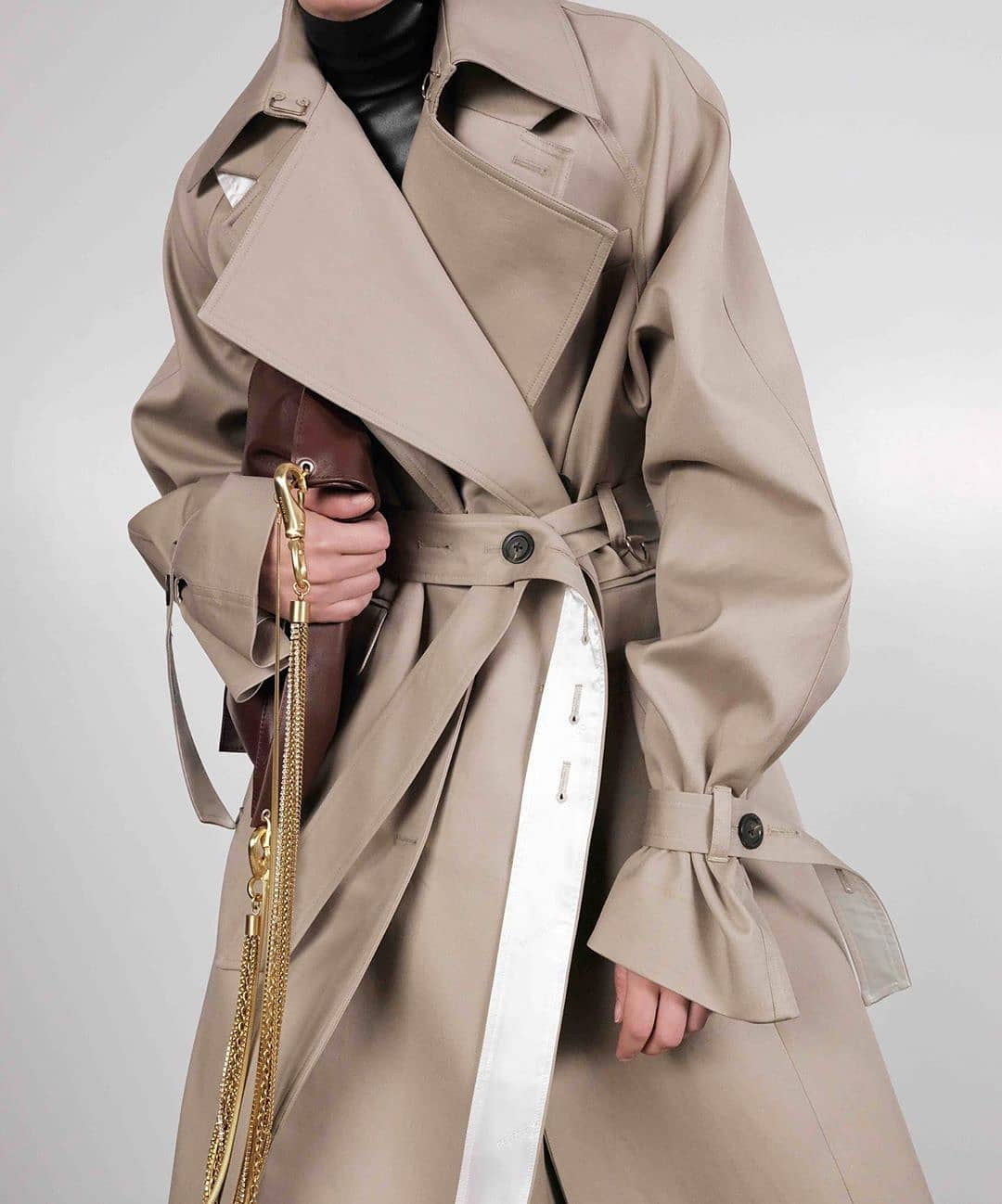 现在的Bottega Veneta在创意总监Daniel Lee的带领下,越来越受到大家的追捧和喜爱,大气而精致的设计风格也体现在了风衣上。