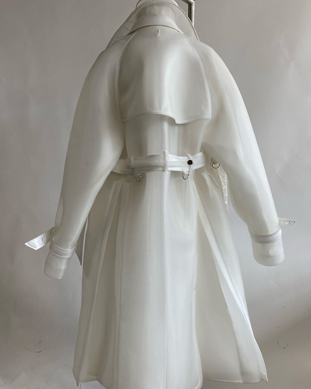如果你觉得这些还不够,那么实验性最强的透明材质风衣绝对值得了解下,一直以来,透明材质都是Peter Do的拿手好戏,结合面料清透的视觉效果,给人眼前一亮的感觉。