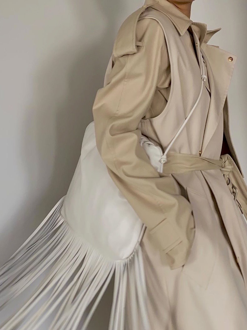 作为一个标准的BV女孩,你可以把Bottega Veneta全套都穿在身上,在THE FRINGE包包和BV BOARD高跟鞋的加持下,更有率性之姿。