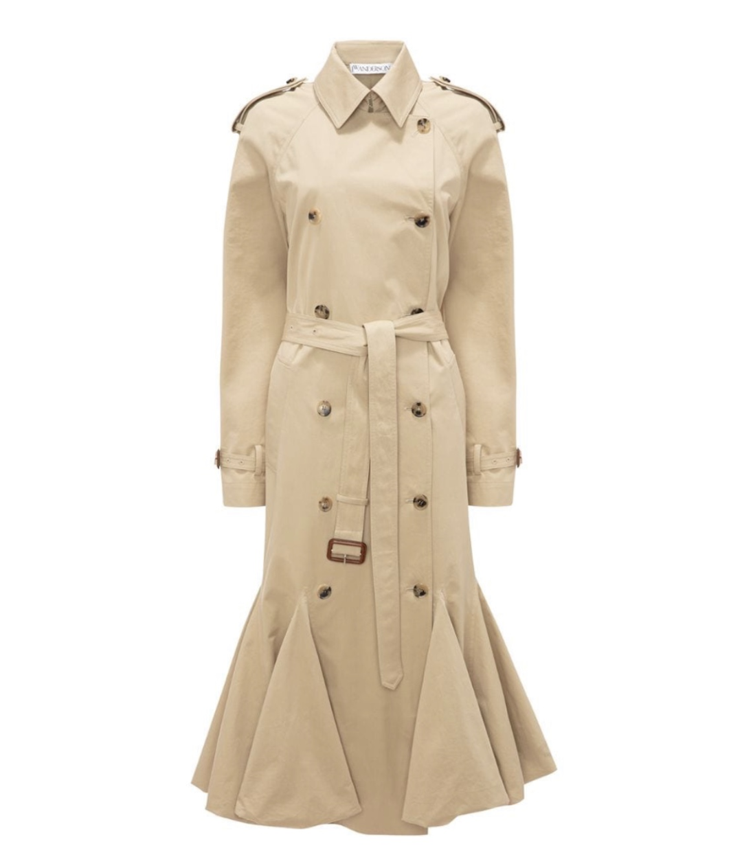 不要以为这就结束了,JW Anderson永远有更新奇的款式——花苞式的裙摆设计玩味十足,而巨大的披风设计更是超出人们的想象,原来风衣还可以这么有趣!