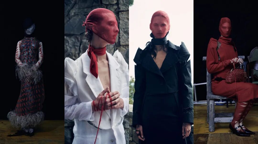 Maison Margiela越来越“怪”。以电影的形式成功实现了一场诡异哥特婚礼与水中Tango表演的碰撞。本季秀场以舞蹈Tango为灵感,黑红的经典搭配魅力十足。John Galliano 的“破坏性”手法以及对婚纱、西服的解构,水元素的加入与吸血鬼家族的理念,更是为本季系列增添了神秘的戏剧效果。
