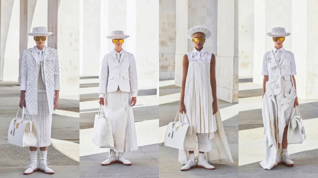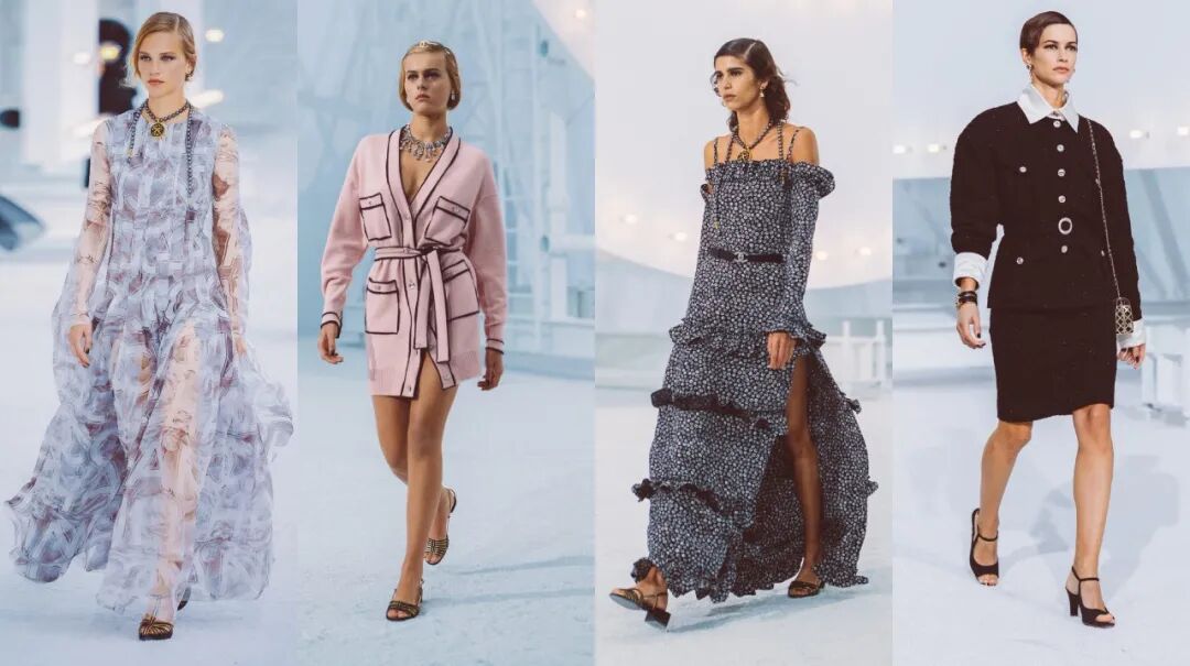 Chanel本季继续在巴黎大皇宫造梦,在秀场中建了个好莱坞。创意总监Virginie Viard借此机会致敬了一把经典。黑白斜纹软呢套装、优雅的开衩裙、飘逸的披肩等带来了主题灵感新诠释,而LOGO字母印花T恤、牛仔裤、亮片刺绣、不对称层叠剪裁等设计为品牌注入了更多温柔的活力力量。包袋也越做越小,最后成为模特挂在腰间和脖子上的饰品,这大小可能只够装下仙女们的仙尘吧。