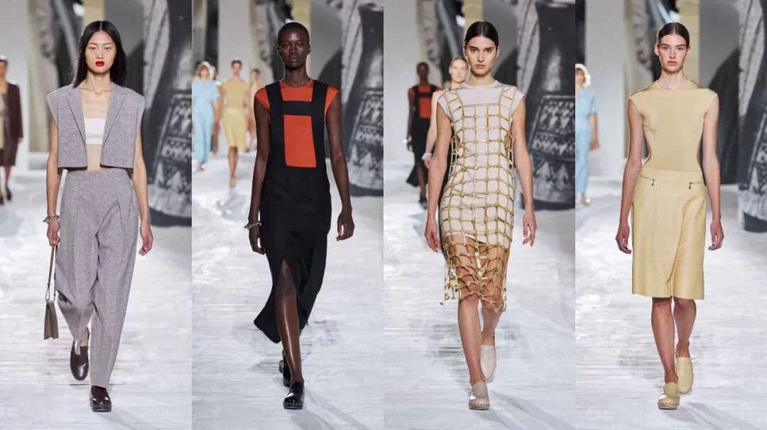 HERMES 以更显女性力量的“重塑自由”为主题。服装尽显女性优美与曼妙的身姿,“col rouleau”露背式包臀修身连体衣作为开场Look拉开大秀序幕,温柔的卡其色和经典黑色贯穿整个系列,平静自然地释放着女性为自由而穿的理念。