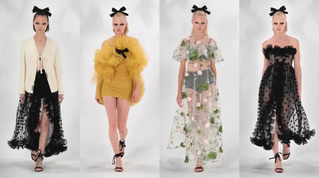 Giambattista Valli延续浪漫主义。再现经典黑色蝴蝶结,浅粉色系和蕾丝雪纺的选择让整场秀十分“养眼”。蕾丝波纹裙装的设计让性感中又不失优雅,绿植印花裙搭配渔夫帽,度假之感油然而生。