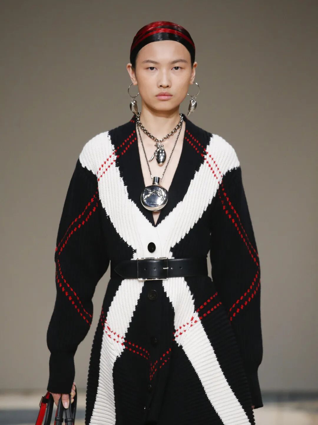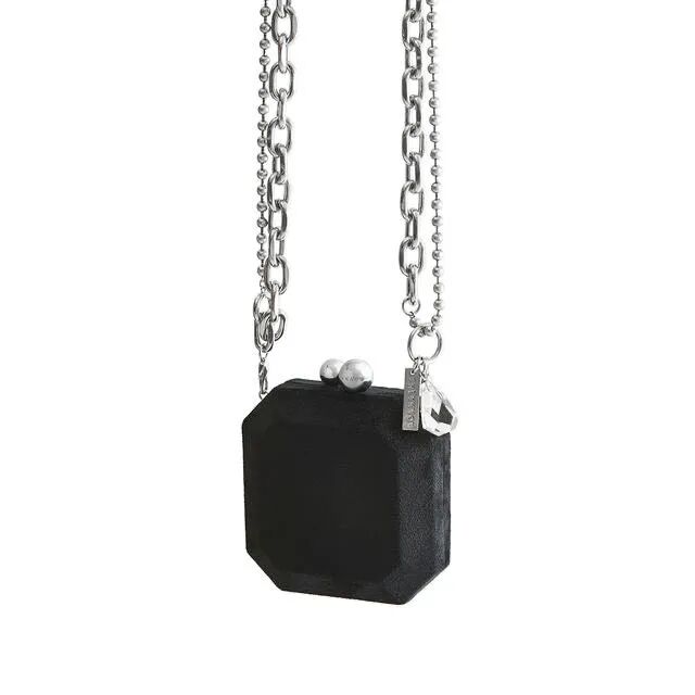 将配饰包作为项链也很可,Alexander McQueen推出的印有神秘感浮雕的鼻烟壶造型吸睛程度百分百,和金属链条项链叠戴就拥有了双倍的酷劲!