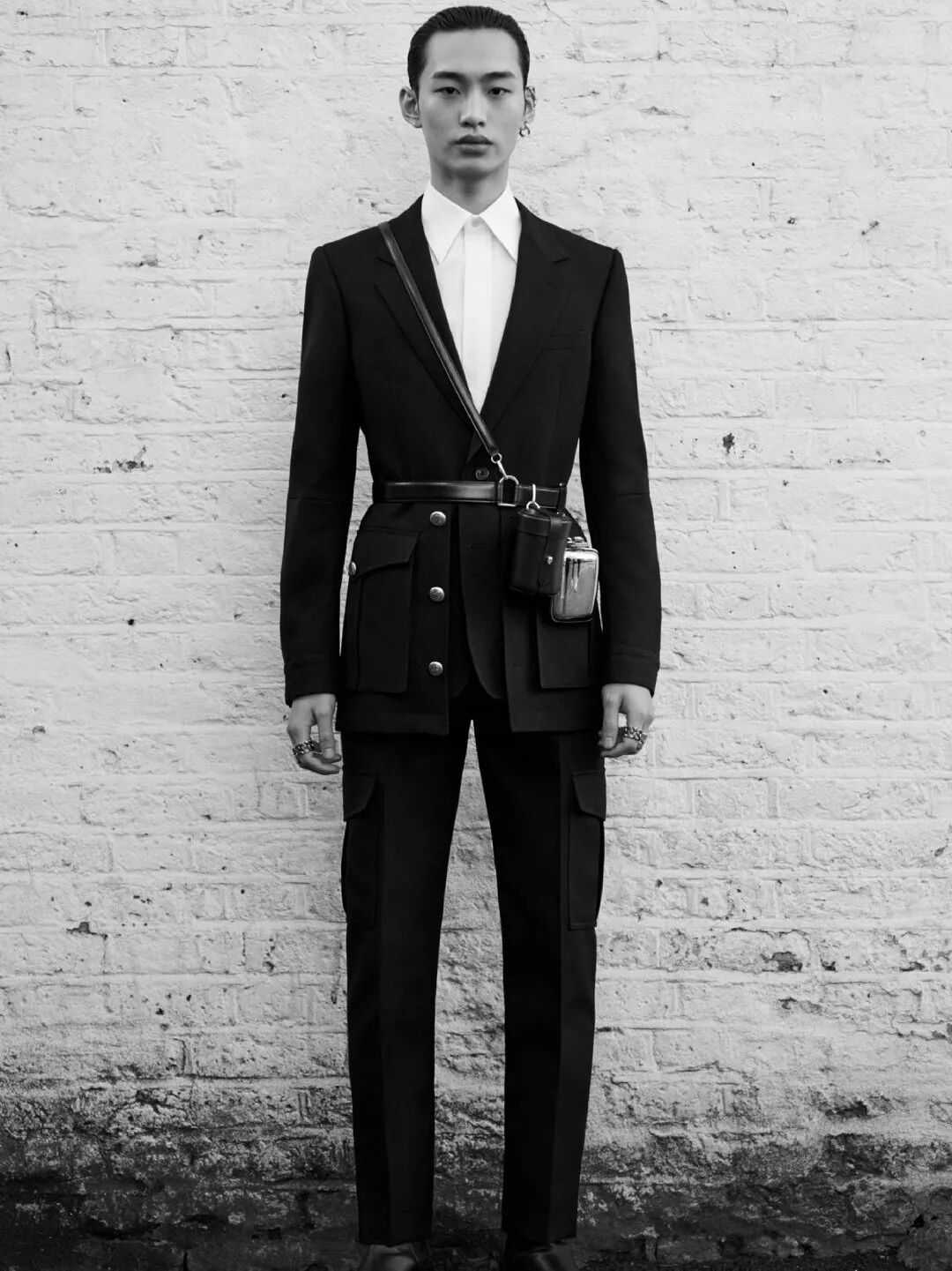 更绝的还有Alexander McQueen的这只甲胄款Myth Cylinder手袋,以骑士服为灵感,皮质绑带系在胸前和腰间,衔接上挂饰小包和金属水壶配饰,古典又新潮,酷飒男女都可轻松驾驭。