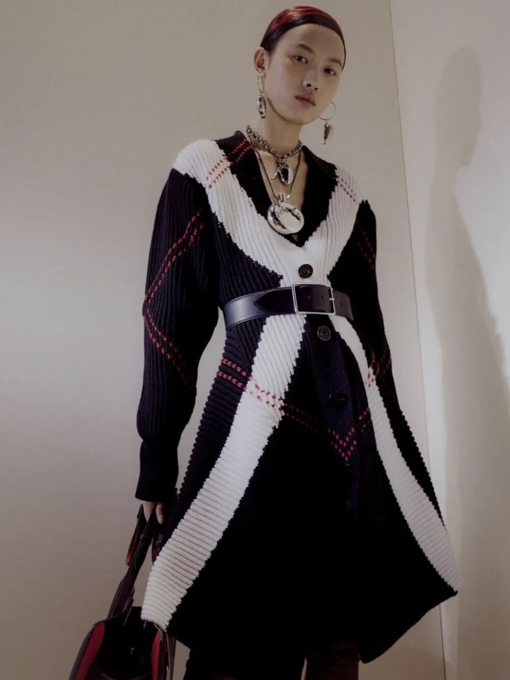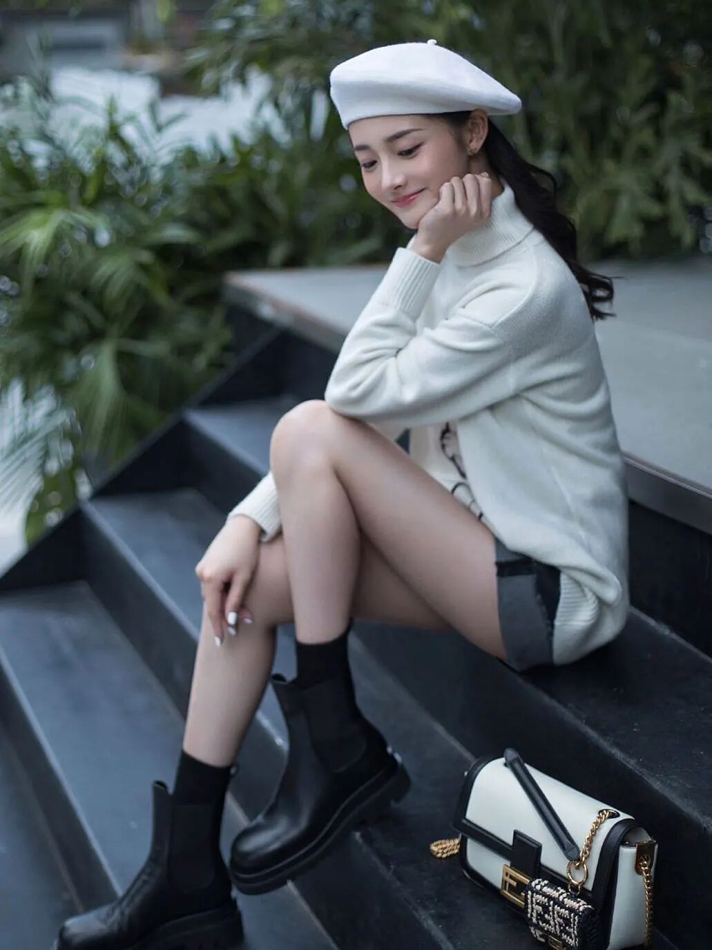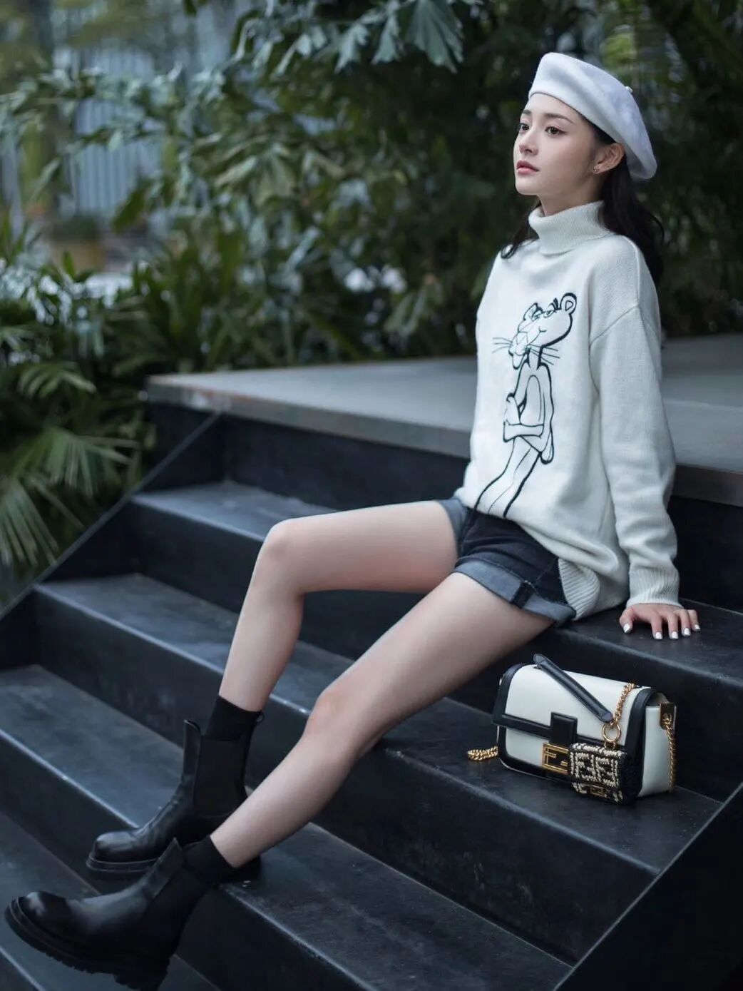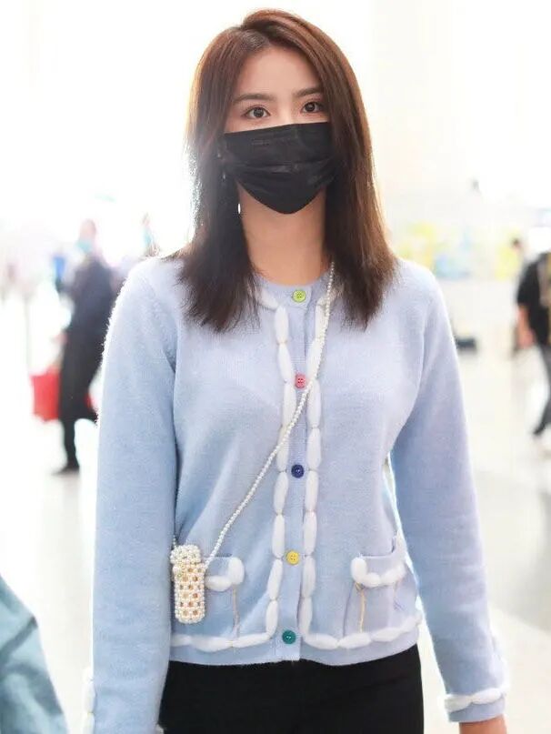 金子涵则是选择了珍珠材质的口红包来配合软糯的针织衫,是今日份的可爱少女没错了。