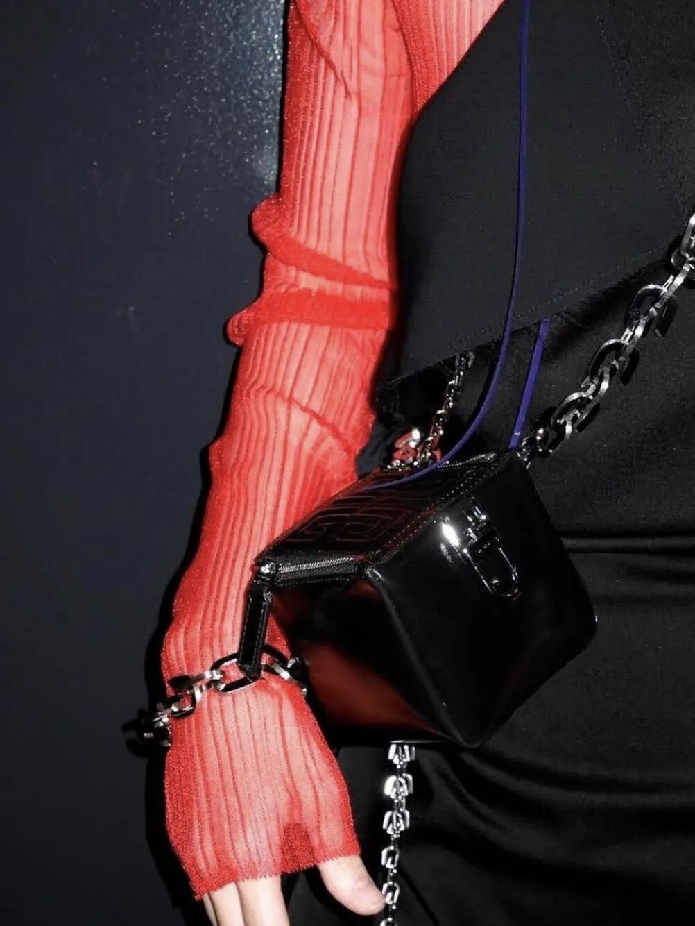 在刚刚结束的Givenchy 2021春夏系列大秀中,最不能忽视的就是这款相机配饰包了,不得不说这个方形的造型太酷了,Matthew Williams的标志性金属链条在本系列也放在了包包上,配上粗链条简直不要太吸睛!