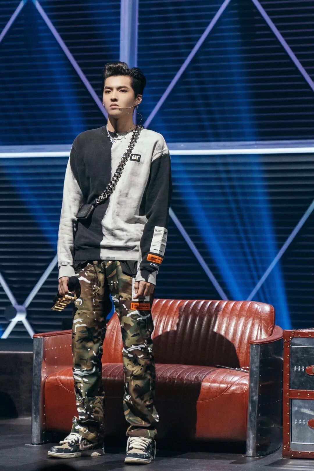 贺峻霖和李昀锐纷纷用它点缀来释放魅力,贺峻霖Pick了几何线性Facet Mirco图案的Airpods包搭配格子衬衫,李昀锐则以亮眼的绿色点缀白TEE,只需要一个超小面积的小包,就能让整套穿搭更出彩。