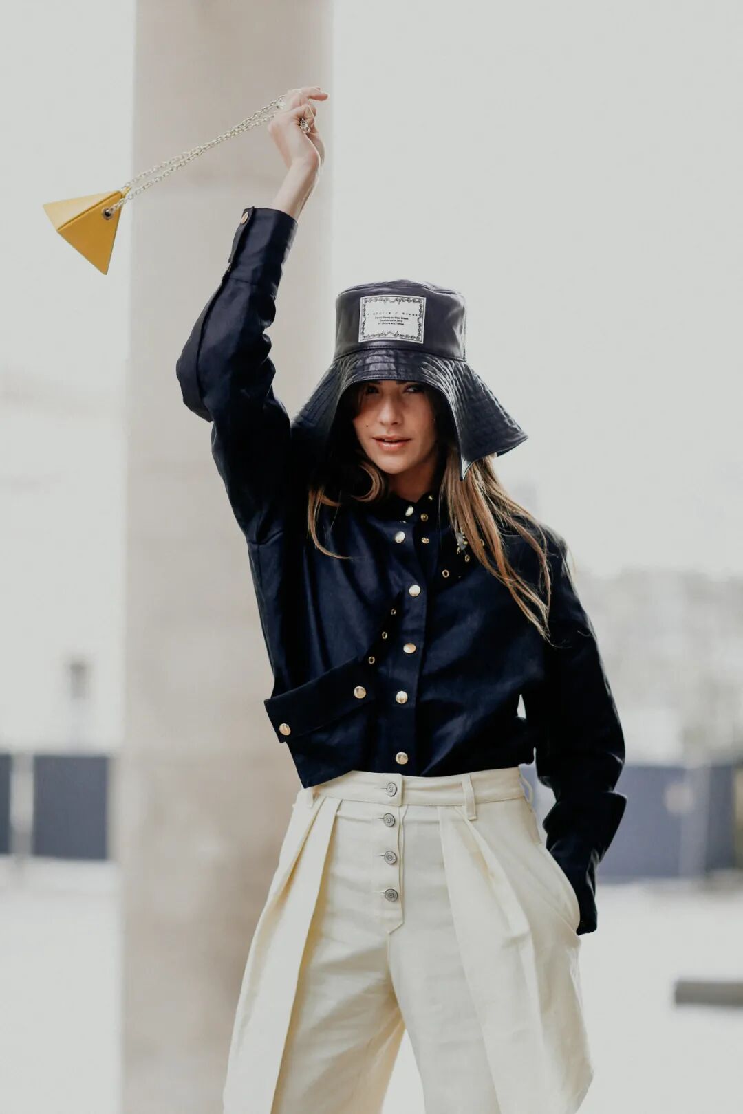 博主Caroline Daur挂包和斜背款都要集齐,和不同的大衣搭配,可盐可甜,将两种风格的时髦感演绎得淋漓尽致。
