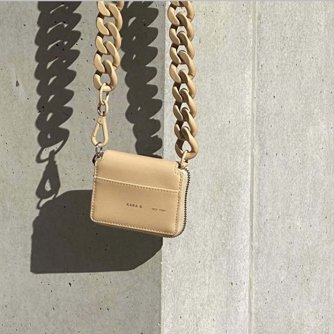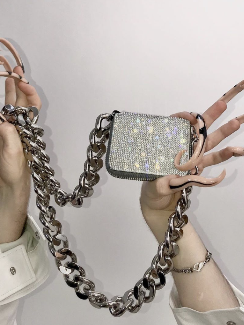 不过要真论起链条设计,想必在INS上火🔥出圈的韩国小众品牌KARA也有话要说,“潮流主理人”吴亦凡已经率先挎起,夸张的超粗链条和小巧的包包形成鲜明对比,要的就是这么Drama!