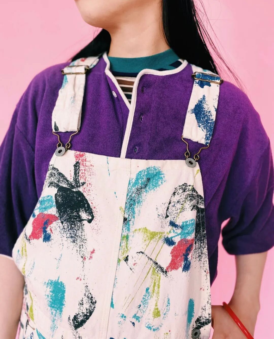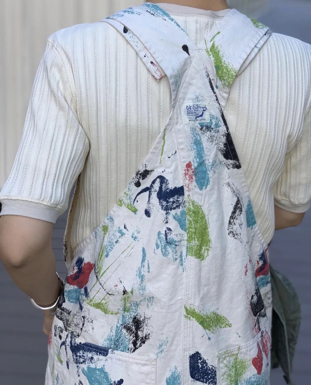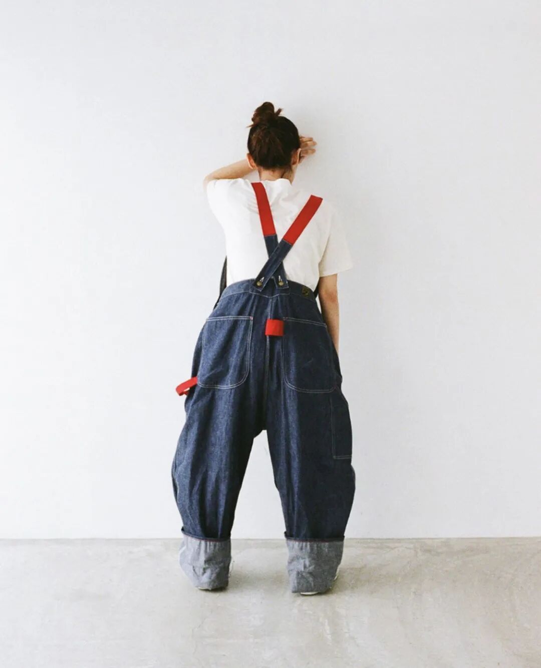 前面说到工装背带裤再次复古回潮重塑本源,作为经典款式的牛仔背带裤更是在面料和廓形上有别于之前,不再追求面料的精致感和收腰显瘦的板型设计,一切都从背带裤最开始诞生的功能性出发。可以看到,今年有很多品牌都在刻意地做旧牛仔面料,尽可能地保留面料本身就具有的粗糙感,更有甚者在此基础上还要将其放大,故意加上磨损后的疤痕印记,追求带有时光痕迹的年代感。而且和去年追求突出身材比例线条的窄版廓形不同的是,今年背带裤廓形上的设计更趋向于去性别化的宽松板型,就像回到了背带裤设计的初衷,一切都是为了工作起来四肢活动能更加轻松和自如。很多日本设计师始终坚持着这个设计原则,比如日本国民品牌BEAMS,早期虽然受到美潮的影响,但随着后期的发展慢慢地摸索出自己的风格,如今这类背带裤成为了日系风的代表之一。如果在日本街头逛一圈,会发现很多矮小的日本女生都非常钟爱这类和显瘦搭不上半点关系的款式,这件BEAMS牛仔背带裤的亮点就在身后的这两根亮色拼接的肩带,一个小小的设计点就能打破牛仔面料沉闷的厚重感。当然时装精们在这类牛仔背带裤的穿搭方式之外,还会像这样,干脆把两根吊带挂在两侧,上身选一件与亮色吊带相同色彩的内搭相呼应,时髦又不费力。Madness的这款设计更是特别,不仅摆脱了一贯以牛仔和深色为主的常规概念,还在面料上结合了重造旧布料,又加上了带有层次感的泼墨效果用以点缀,实在是细节满满,复古感十足。如何觉得Madness略微偏男装感,可以看看这件五颜六色的油画笔触填充的背带裤款式,还记得芭姐在前面说白色背带在以前一般是什么人穿的吗?如果再搭配一顶画童帽,妥妥的文艺女青年造型就get到啦。如果喜欢更小众设计的宝宝们,芭姐推荐一个宝藏小众设计师品牌M.Y.O.B,他们在2020秋冬系列开始启动了使用回收纤维,环境友好材料的环保计划,希望能鼓舞新一代的你们扮演起这个星球上每一个重要的角色。