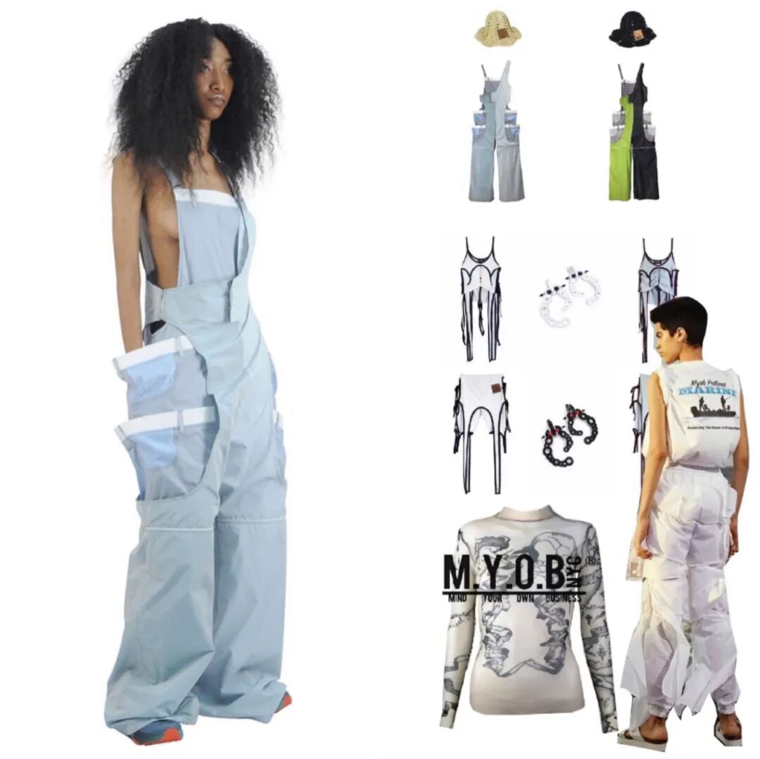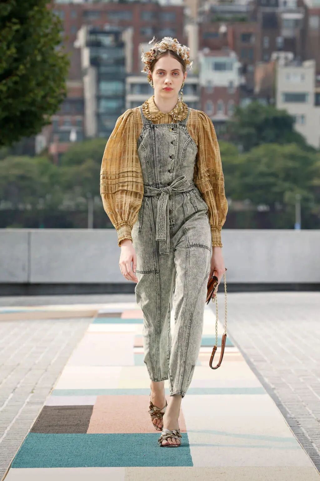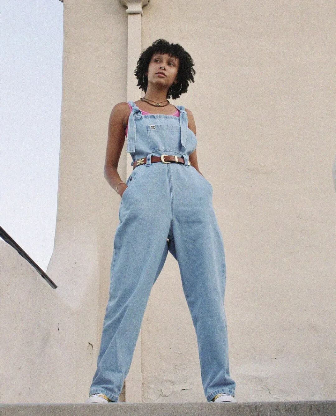 前面说到工装背带裤再次复古回潮重塑本源,作为经典款式的牛仔背带裤更是在面料和廓形上有别于之前,不再追求面料的精致感和收腰显瘦的板型设计,一切都从背带裤最开始诞生的功能性出发。可以看到,今年有很多品牌都在刻意地做旧牛仔面料,尽可能地保留面料本身就具有的粗糙感,更有甚者在此基础上还要将其放大,故意加上磨损后的疤痕印记,追求带有时光痕迹的年代感。而且和去年追求突出身材比例线条的窄版廓形不同的是,今年背带裤廓形上的设计更趋向于去性别化的宽松板型,就像回到了背带裤设计的初衷,一切都是为了工作起来四肢活动能更加轻松和自如。很多日本设计师始终坚持着这个设计原则,比如日本国民品牌BEAMS,早期虽然受到美潮的影响,但随着后期的发展慢慢地摸索出自己的风格,如今这类背带裤成为了日系风的代表之一。如果在日本街头逛一圈,会发现很多矮小的日本女生都非常钟爱这类和显瘦搭不上半点关系的款式,这件BEAMS牛仔背带裤的亮点就在身后的这两根亮色拼接的肩带,一个小小的设计点就能打破牛仔面料沉闷的厚重感。当然时装精们在这类牛仔背带裤的穿搭方式之外,还会像这样,干脆把两根吊带挂在两侧,上身选一件与亮色吊带相同色彩的内搭相呼应,时髦又不费力。Madness的这款设计更是特别,不仅摆脱了一贯以牛仔和深色为主的常规概念,还在面料上结合了重造旧布料,又加上了带有层次感的泼墨效果用以点缀,实在是细节满满,复古感十足。如何觉得Madness略微偏男装感,可以看看这件五颜六色的油画笔触填充的背带裤款式,还记得芭姐在前面说白色背带在以前一般是什么人穿的吗?如果再搭配一顶画童帽,妥妥的文艺女青年造型就get到啦。如果喜欢更小众设计的宝宝们,芭姐推荐一个宝藏小众设计师品牌M.Y.O.B,他们在2020秋冬系列开始启动了使用回收纤维,环境友好材料的环保计划,希望能鼓舞新一代的你们扮演起这个星球上每一个重要的角色。