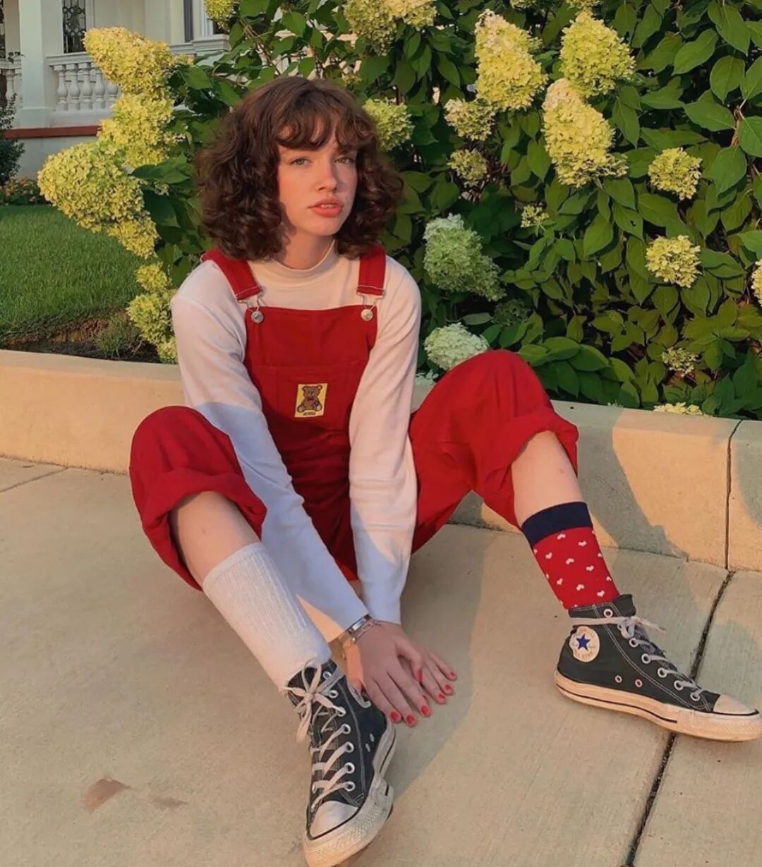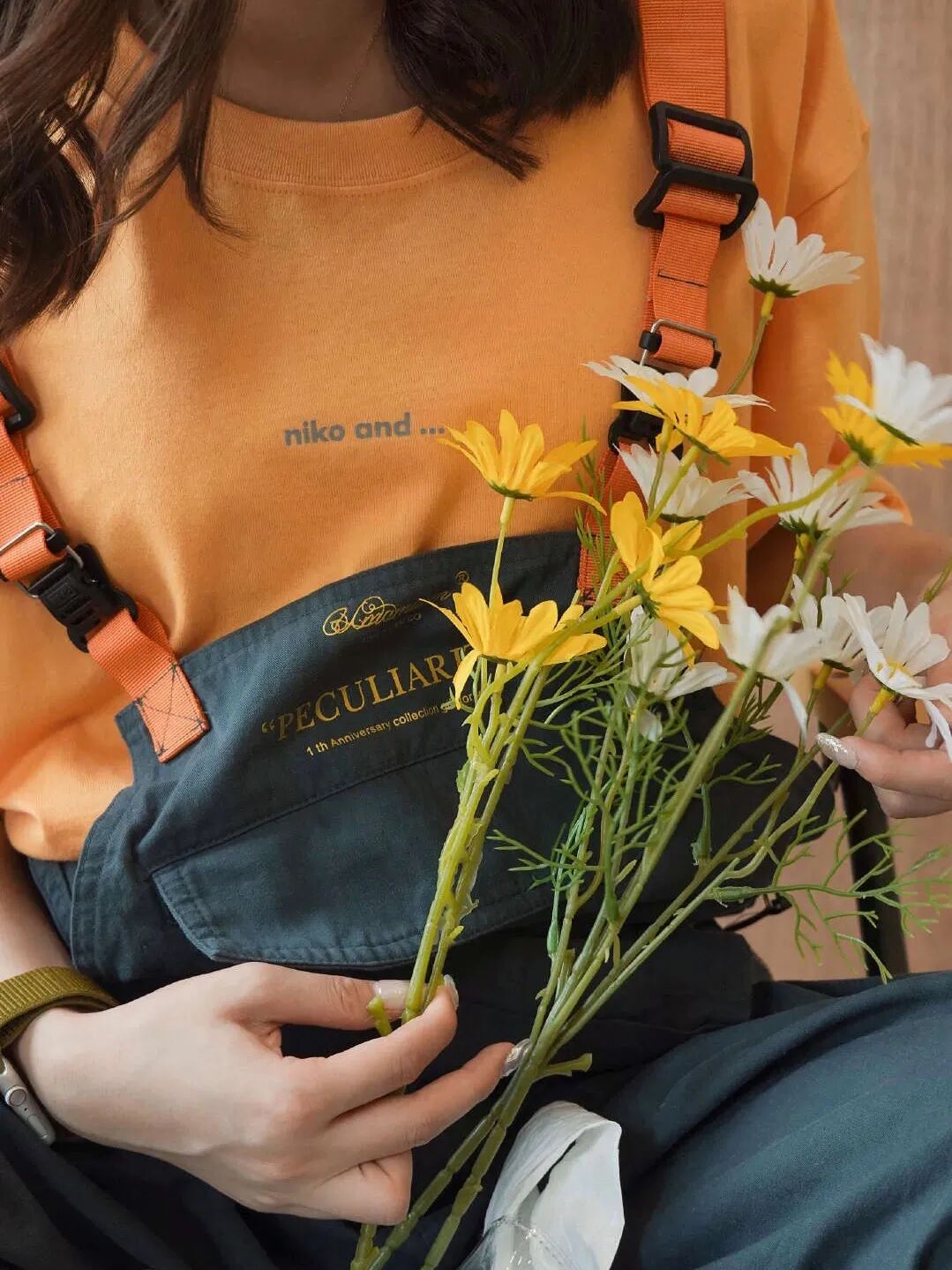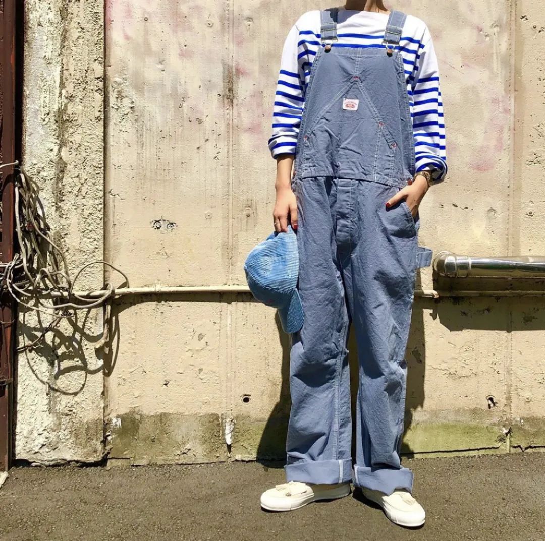 娇小的萌妹子们也不用害怕,只要将有收紧带的裤腿往上挽起来就行啦,露出纤细的脚踝部分,搭配一件彩色条纹或任意一件亮色上衣作为内搭,元气满满的少女感就出来了。尽管内搭的是一件轻薄质感如泡泡袖这样的单品竟然都毫无违和感,相反两种极大反差感的单品搭配在一起时,反而在少女感和中性风之间呈现出一种奇妙的平衡感。那么,同理可推如果搭配一件相近色系的小碎花上衣也不会感到奇怪了,再配上一双白色帆布鞋,第一次觉得中性风的背带裤竟然显得如此软萌可爱。