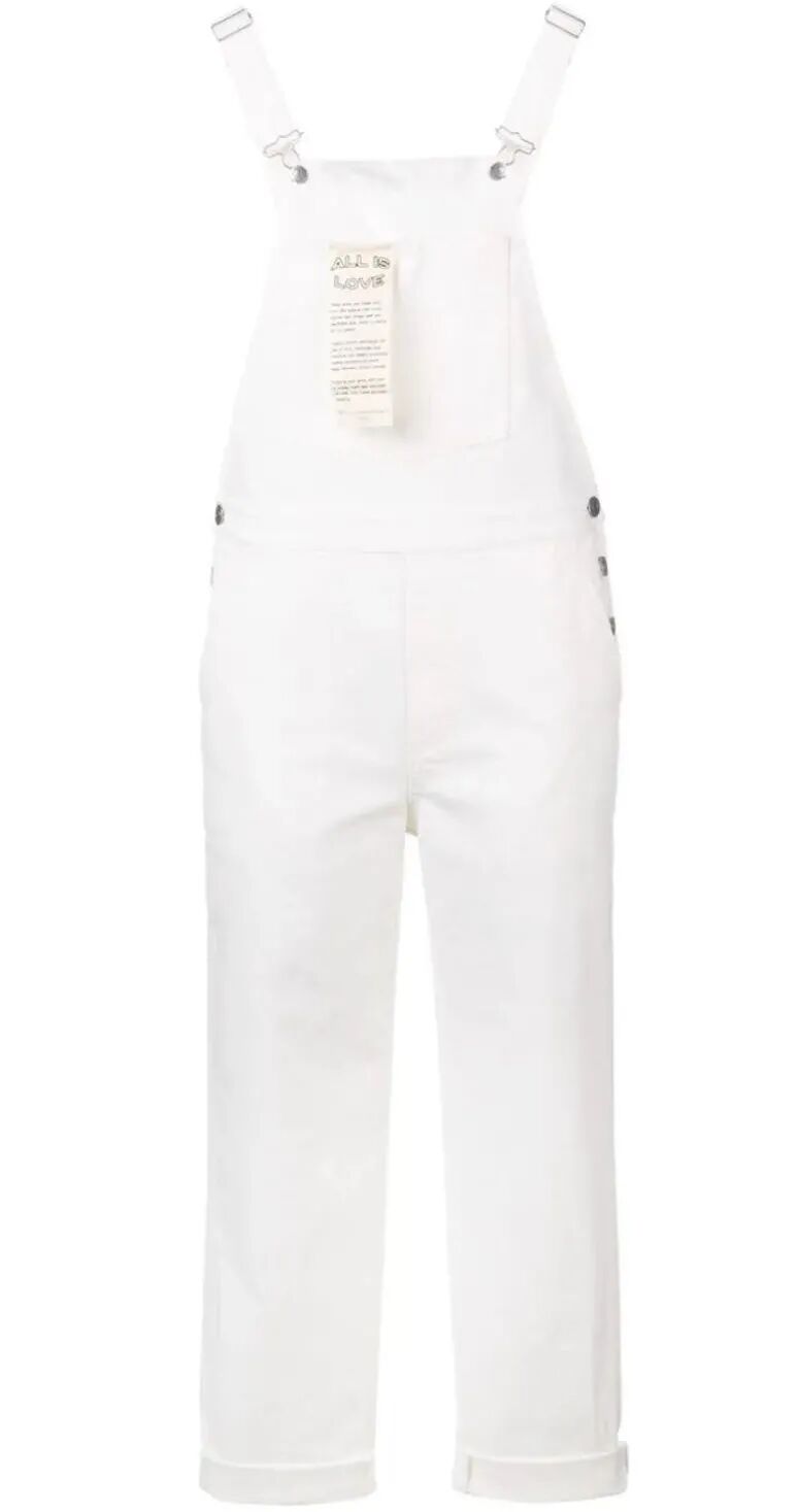 虽然工装背带裤最早是由男裤衍生而来,但是发展至今,它早已成为Unisex,男女皆可穿的潮流单品。《我家那闺女2》里,黄雅莉就穿着一件Nigel Cabourn Lybro系列的工装背带裤。而且工装背带裤最大的优点就是面料扎实,不仅耐脏耐磨,耐久经穿,板正的廓形线条更是遮肉显瘦的王炸单品,在座凡是担心显胯宽、腿粗的宝宝们,只管放心大胆地选择这种款式。也因为它板型宽松,秋冬大家穿得最多的各种卫衣,毛衫都能毫不费力地塞进去。当然担心这样搭配丢了腰身比的宝宝们,大可学千玺一样只要聪明地加上一根小小的腰带问题就轻松解决啦。外面再套上一件硬挺的西装外套或是长款大衣,踩一双高筒长靴就能立刻出门,保暖时髦双管齐下,看还有谁再敢说背带裤不适合出现在工作场合。可购于:www.stellamccartney.com追求“破旧”面料的Overalls