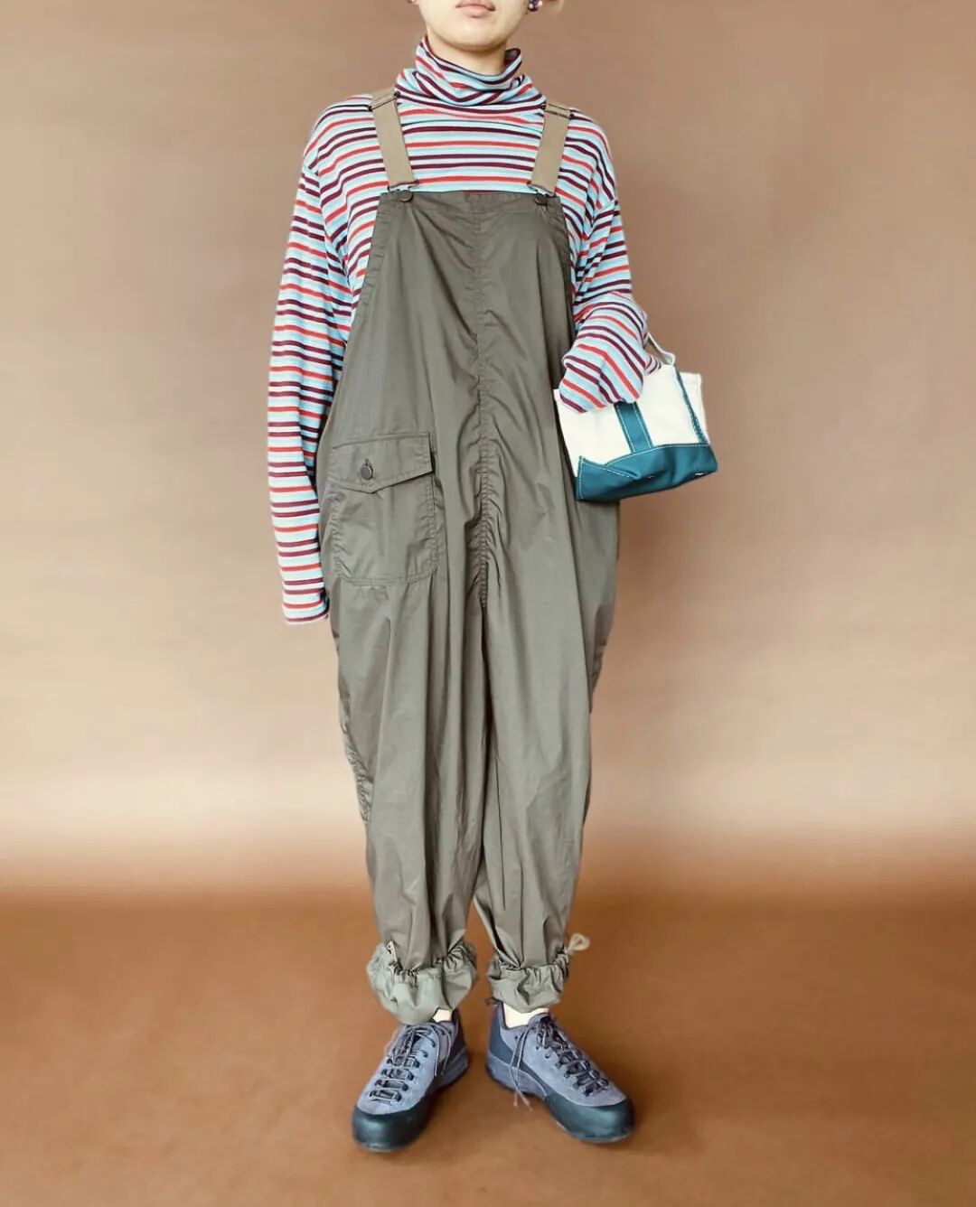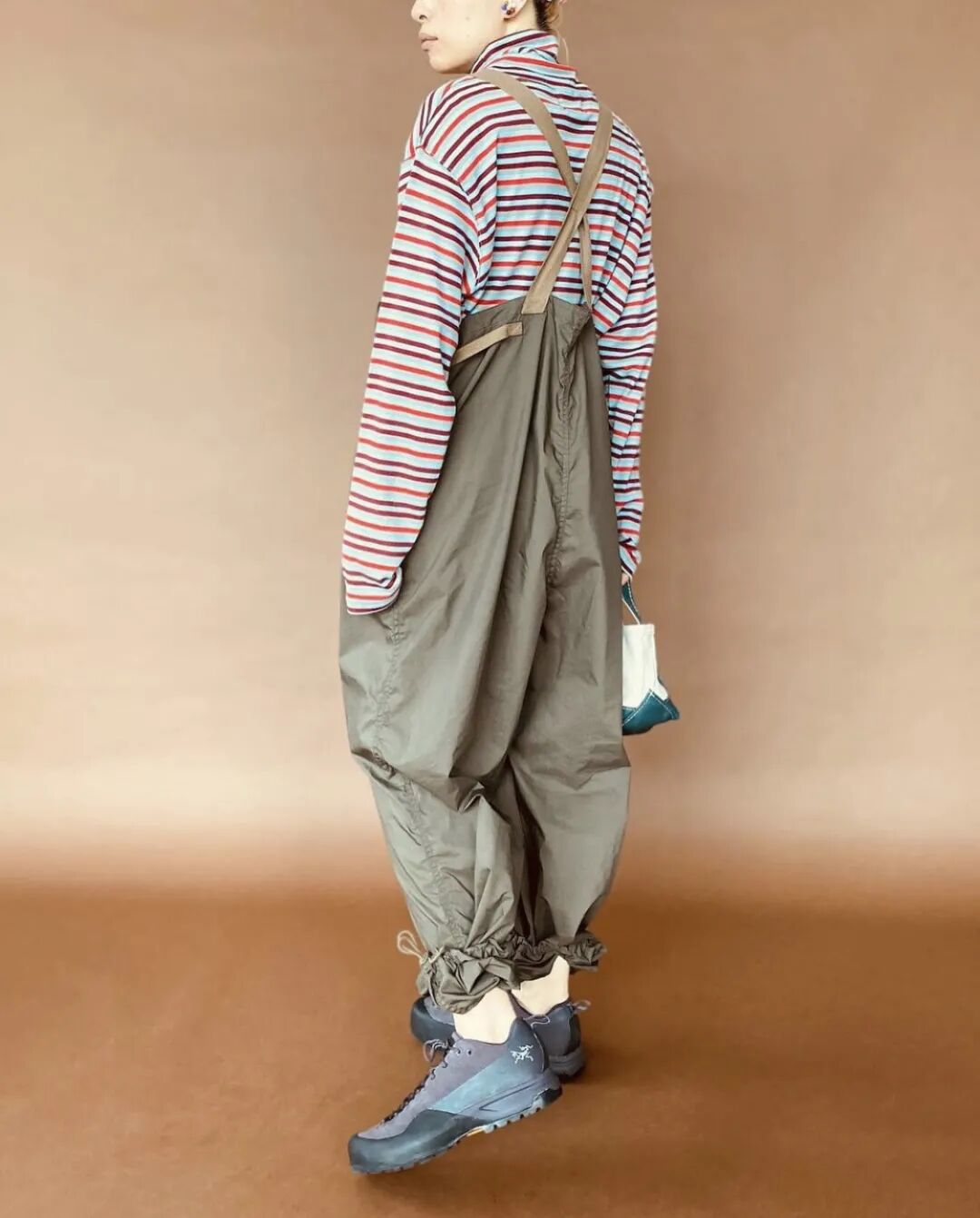 来自UMAMILLSM的这件极富造型感的水洗抽褶背带裤穿起来实在是帅得不行,UMAMILLSM是一个男女通穿将极简主义和军事、户外元素结合得淋漓尽致的国潮品牌,有个性的酷Girl们赶紧看过来吧。自2015年成立至今,一直都在坚持着环保时尚的理念,以未来感和自然物质本身具有的趣味性为设计初心,整个品牌的设计风格添加了很多年轻人的个性和想法在里面,说不定在这里你能找到灵魂共鸣呢。发现没有,今年不管是哪种款式,始终围绕着的中心词就是“旧”和“复古感”,这种水洗面料的垂重感要远远高于前两种,裤腿抽褶的设计就是它的亮点。
