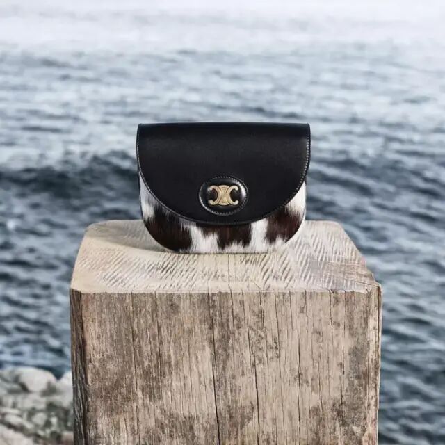 CELINE显然也深谙此道,2020秋冬的TRIOMPHE BAG采用黑色牛皮拼接奶牛纹皮草,优雅质感瞬间让你告别秋冬的臃肿,还不快来做个精致的CELINE女孩!