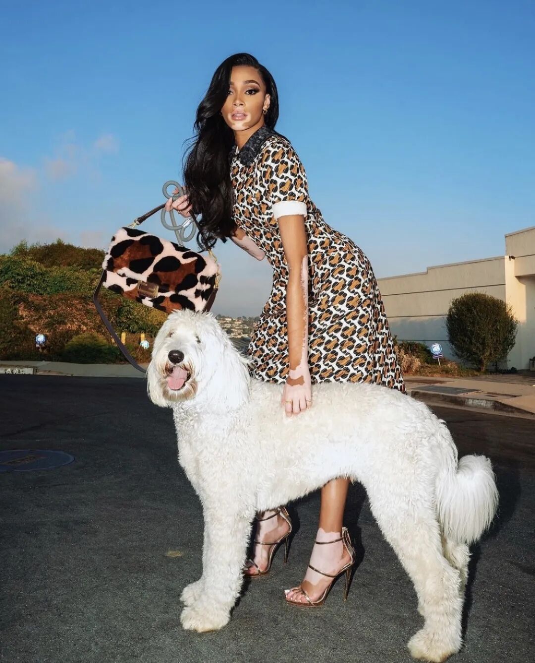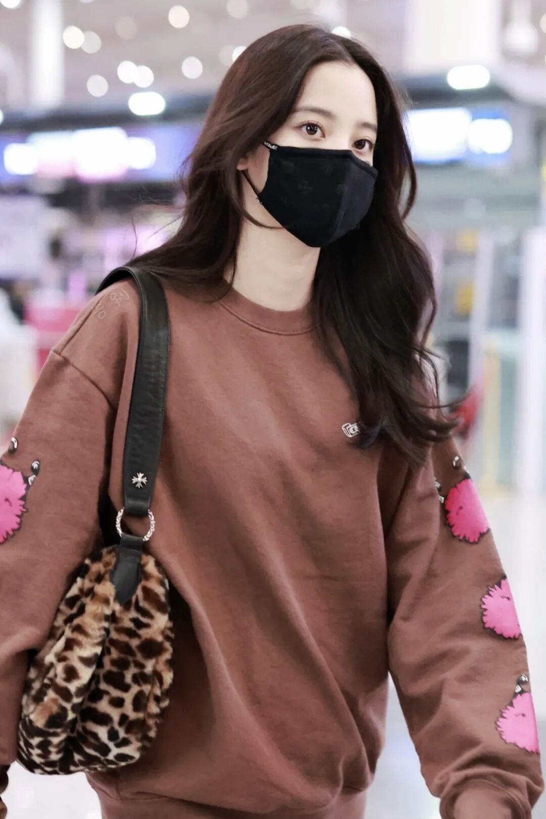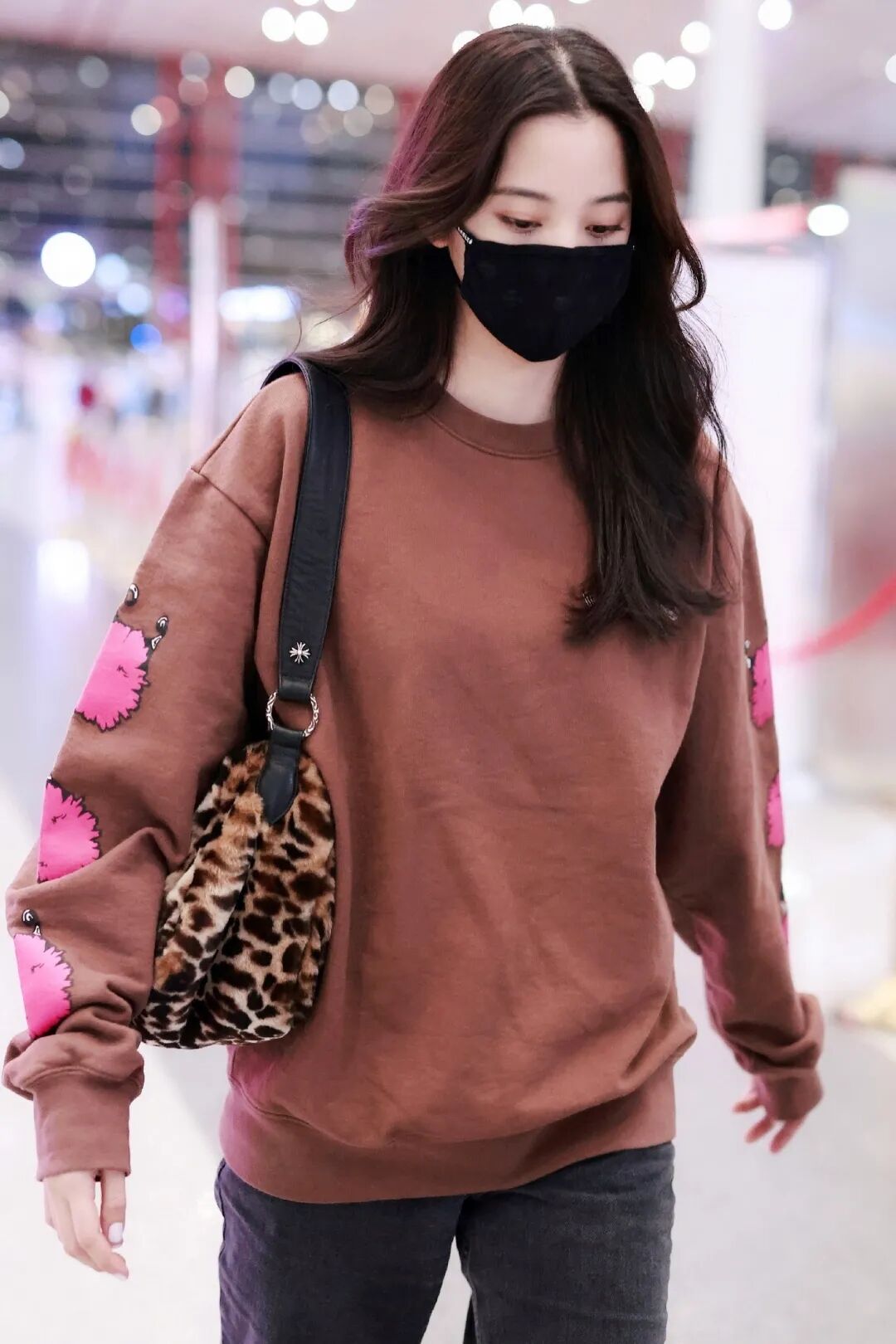 前几天,娜比现身机场时,就选择用一只毛绒包来加持自己的中性风穿搭,标志性的卫衣➕牛仔裤的休闲穿搭,和豹纹毛绒包完美Match。