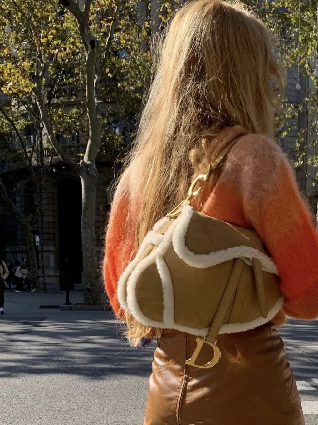 Dior Saddle Bag在今年也换上了新衣,追溯到2000年春夏系列,鬼才John Galliano设计首次亮相,这季以经典马鞍包型麂皮配上羊羔毛钩边全新回归,让人完全一秒进入秋冬氛围,王紫璇抢先上身了这款Teddy马鞍包,浅色外套与马鞍包碰撞,复古腔调满满。