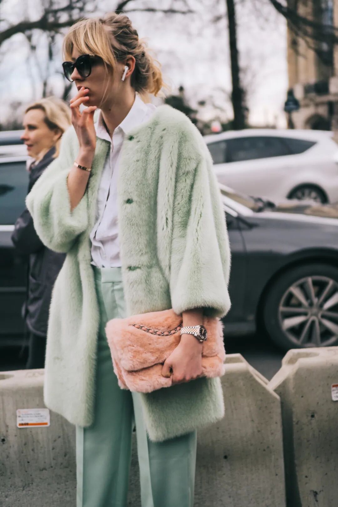 走在时髦最前线的博主们更是变着花样把毛绒包背在身上,Anne Johannsen和Blanca纷纷上身,大玩颜色,俏皮又时髦。
