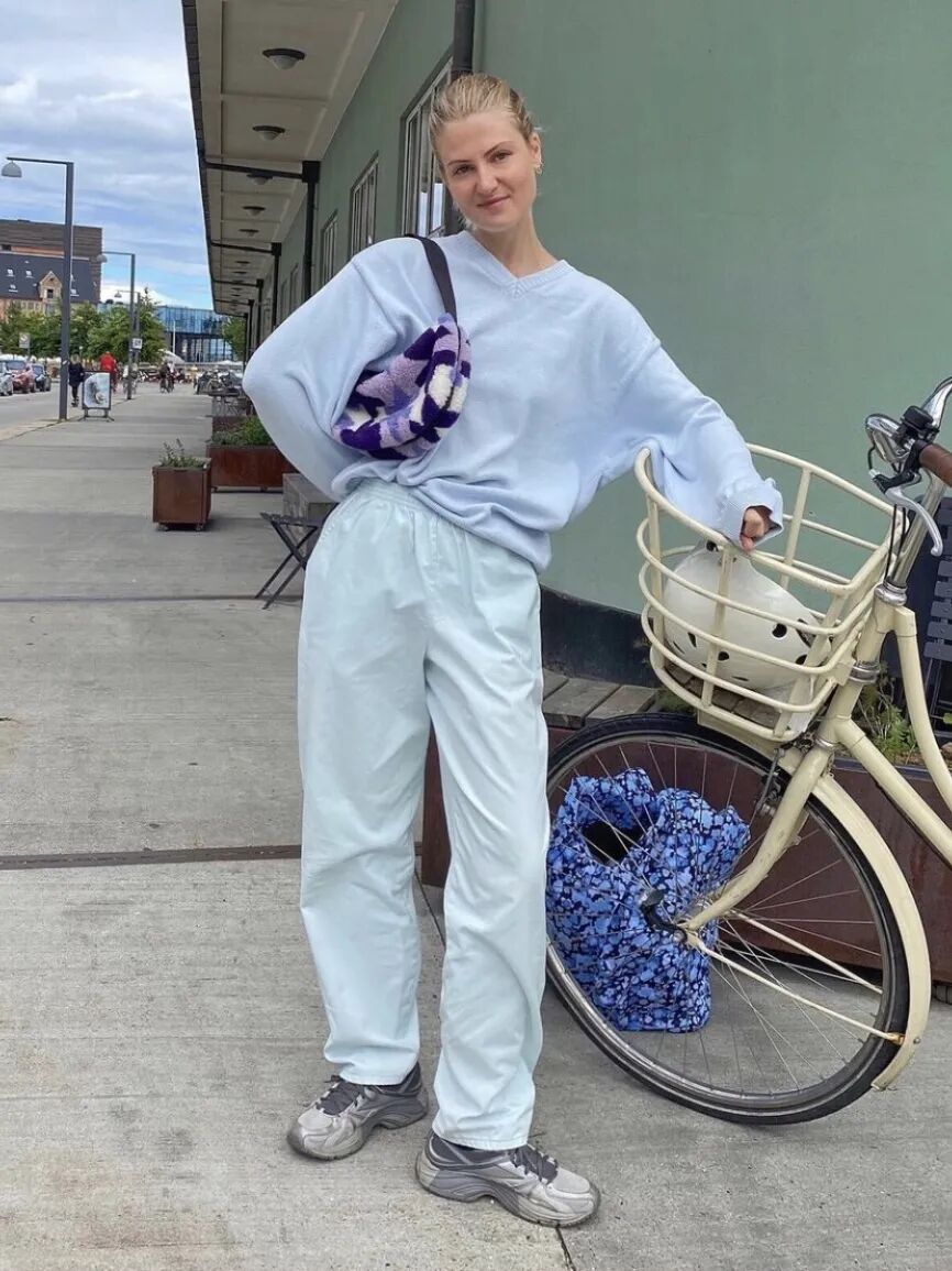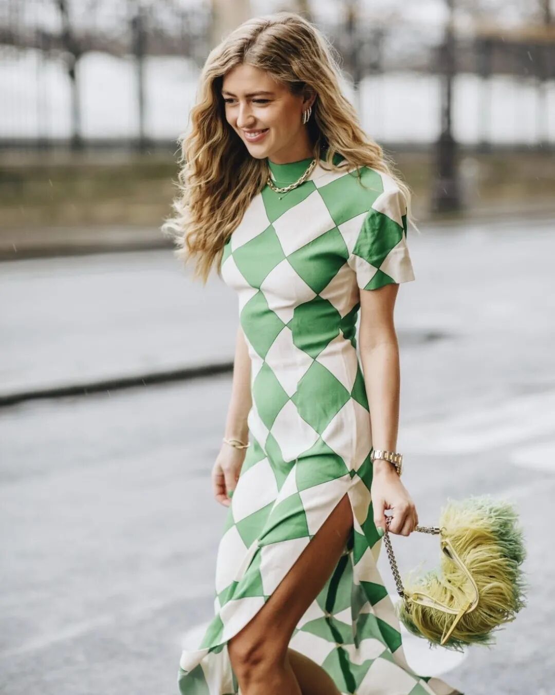 看看时装博主Emili Sindlev,早已拿起毛线流苏包,清新的绿色毫无厚重感,流苏包包伴随着她的大步流星散发流动的魅力。
